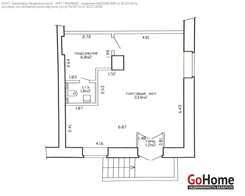 Предлагаем Вашему вниманию светлое торговое помещение с хорошим ремонтом в центре города, вблизи ст.м. Институт Культуры, по адресу: ул. Московская, 7. Объект имеет площадь 42.8 м2 и хорошо подойдёт как для сферы услуг, так и для организации торговли разнообразной группы товаров. В помещении заведена вода, разведены необходимые коммуникации, есть собственный отдельный вход и возможность размещения вывески на фасаде здания.