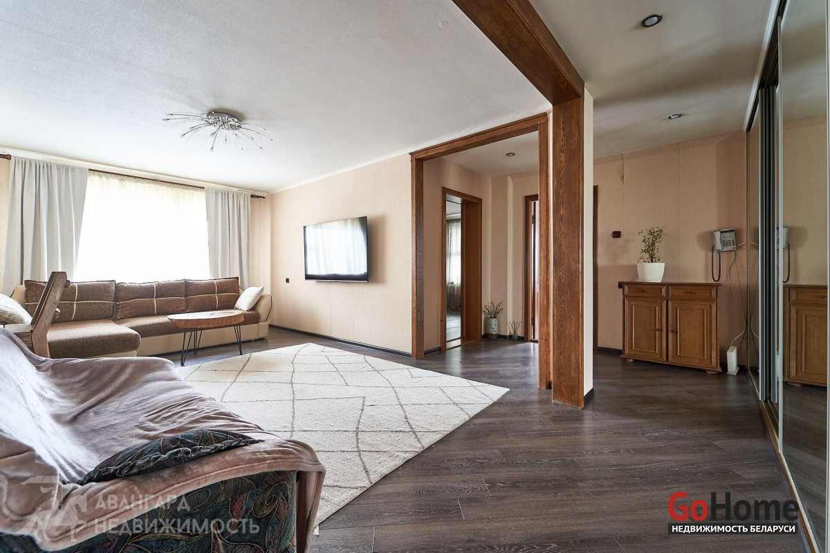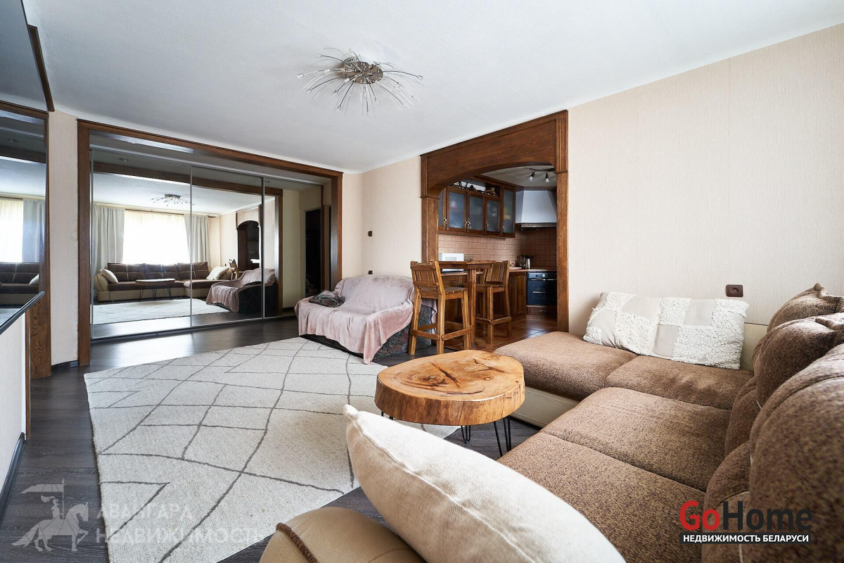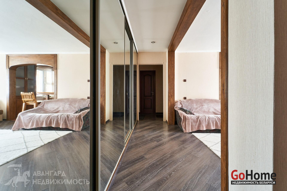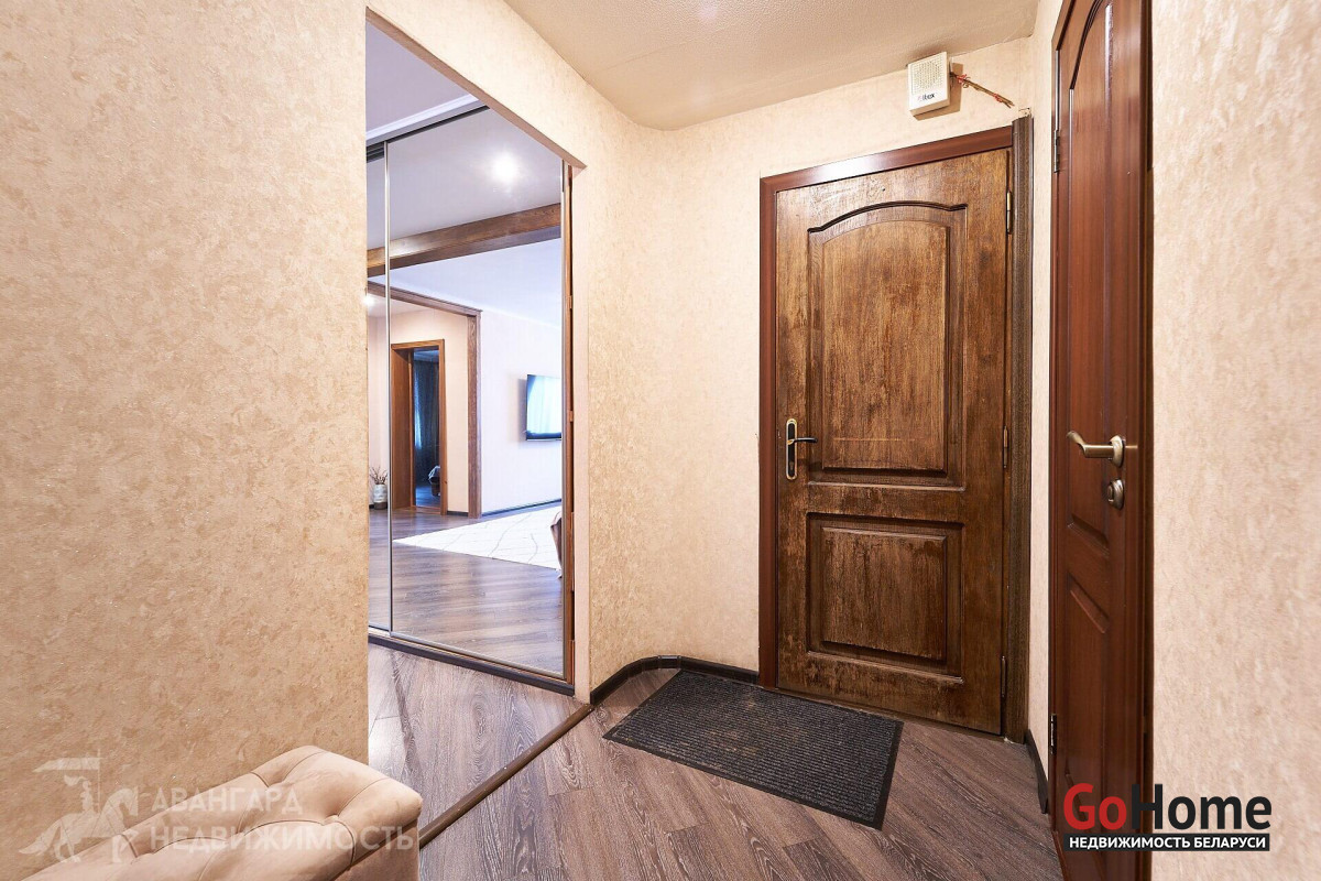 Отличная планировка – две широкие застекленные лоджии, санузлы удалены от кухни. Добротный ремонт, выполнен из качественных материалов. Кухня и межкомнатные двери – массив. Установлены стеклопакеты. На полу – ламинат, на стенах обои. В санузлах и на кухне уложена плитка – все максимально практично.
