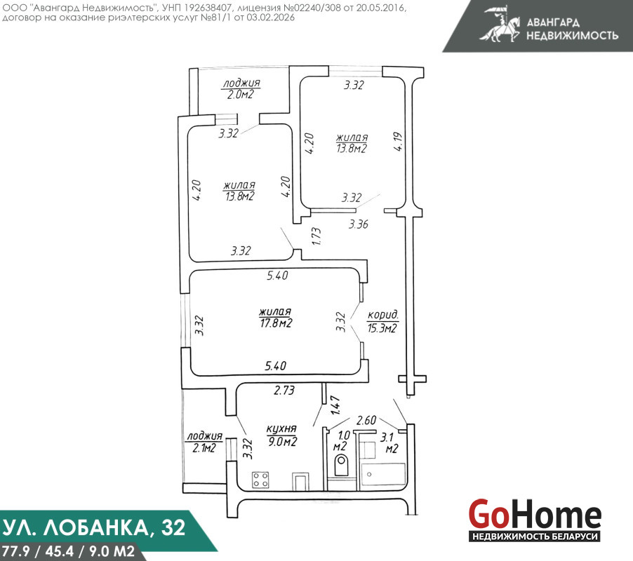 Дом повышенной комфортности 2000 года, находится в зеленой зоне. Квартира расположена на 6-м этаже 12 дома. Общая площадь по СНБ – 77.9 м2, жилая – 45.4 м2, кухня – 9 м2. Высота потолков 2,61 м.