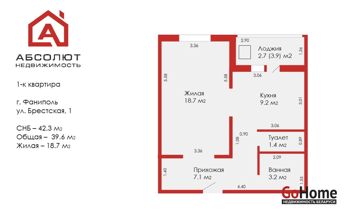 Площадь указана по СНБ.