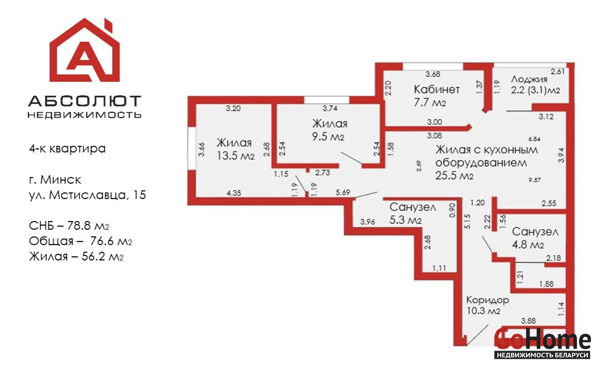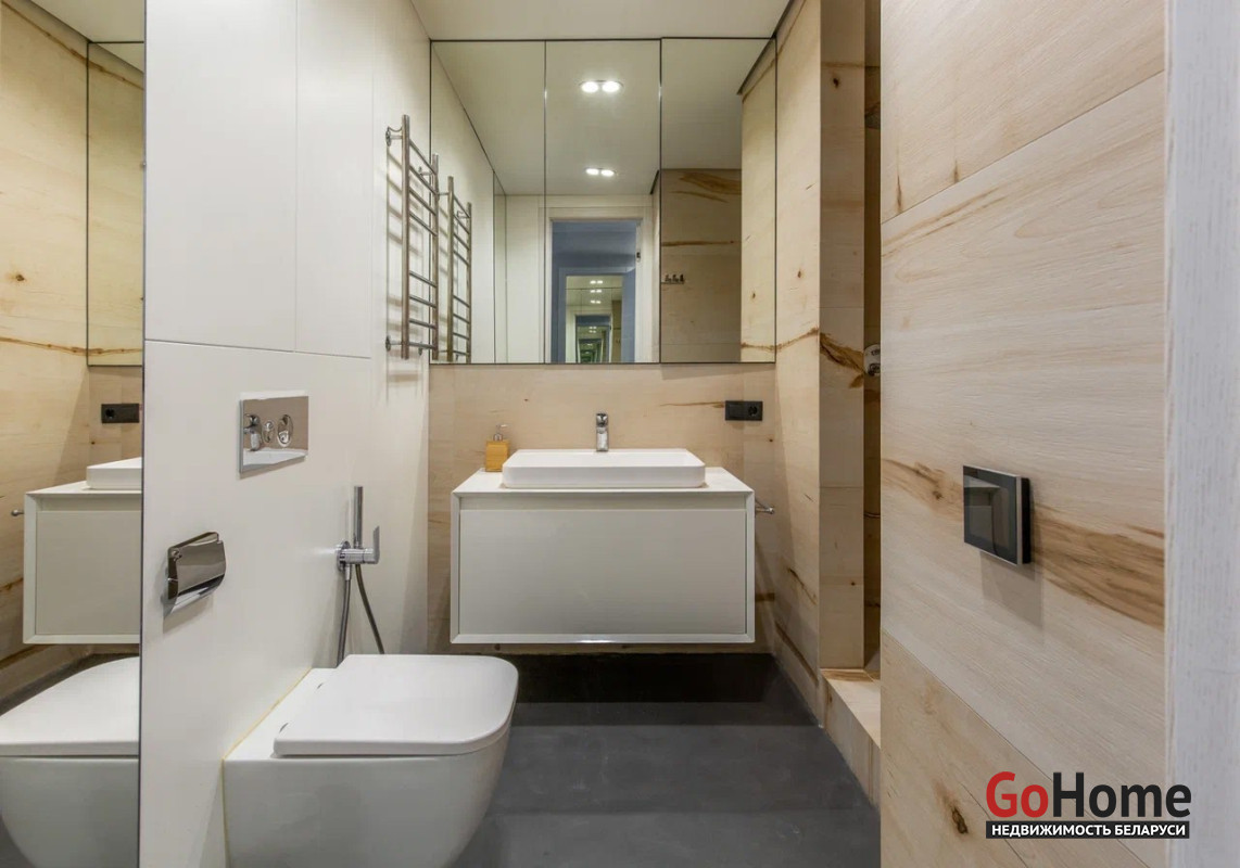 Планировка: три изолированные комнаты, большая кухня-гостиная, 2 сан. Узла, гардеробная комната