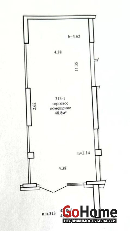 - Площадь 48,8 м2, высота потолков 3,6 м;