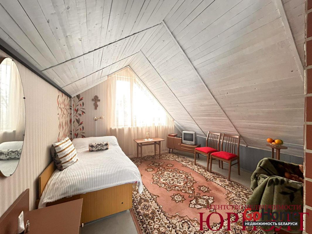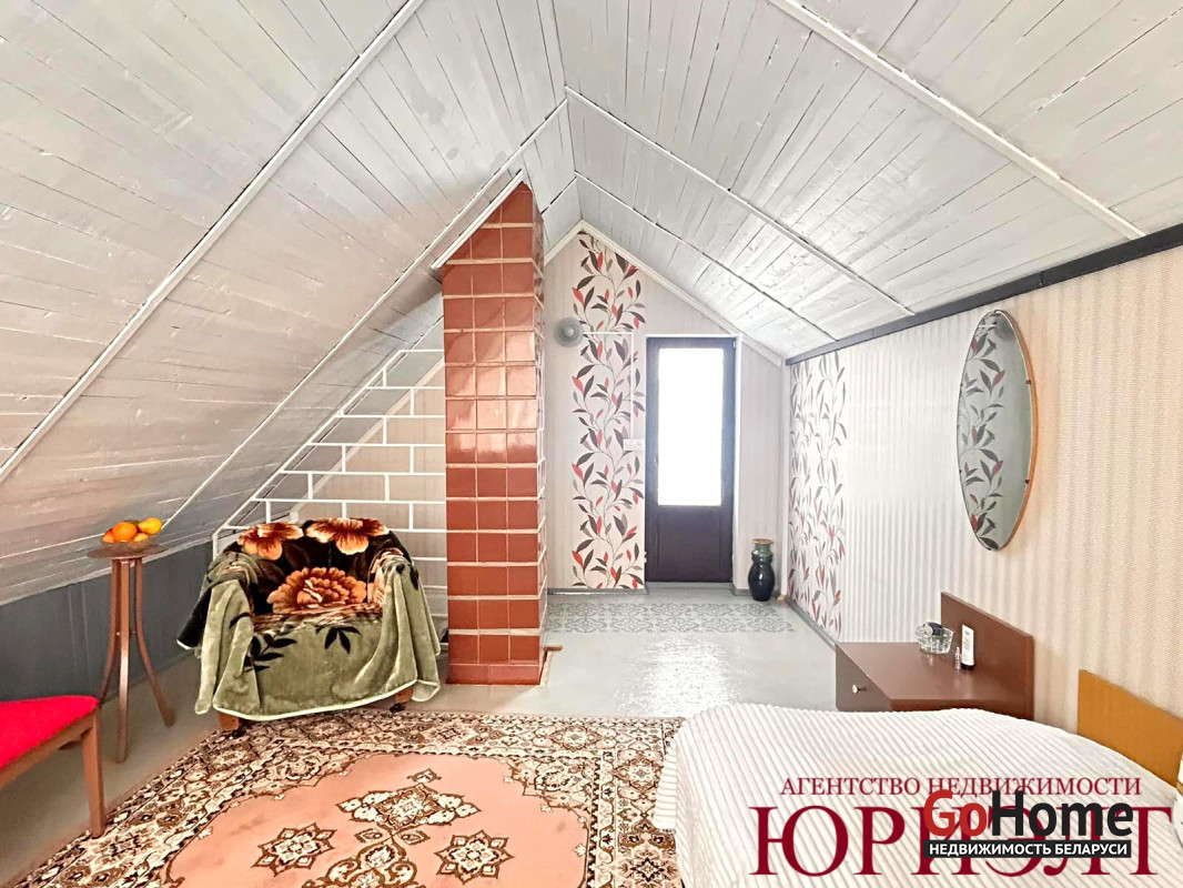 Домик в хорошем жилом состоянии: установлены стеклопакеты, на мансардном этаже из комнаты выходит уютный балкончик; под кухней есть подвал, оборудованный стеллажами.