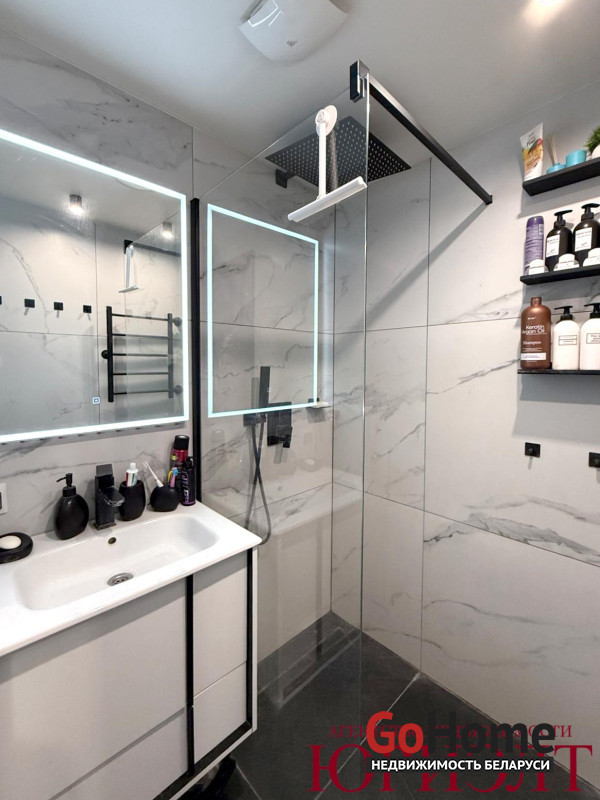 - Раздельный с/у: в ванной комнате установлен тропический душ, душевая кабина без поддона, трап в пол под уклоном, имеется подогрев пола; в туалете установлен гигиенический душ.