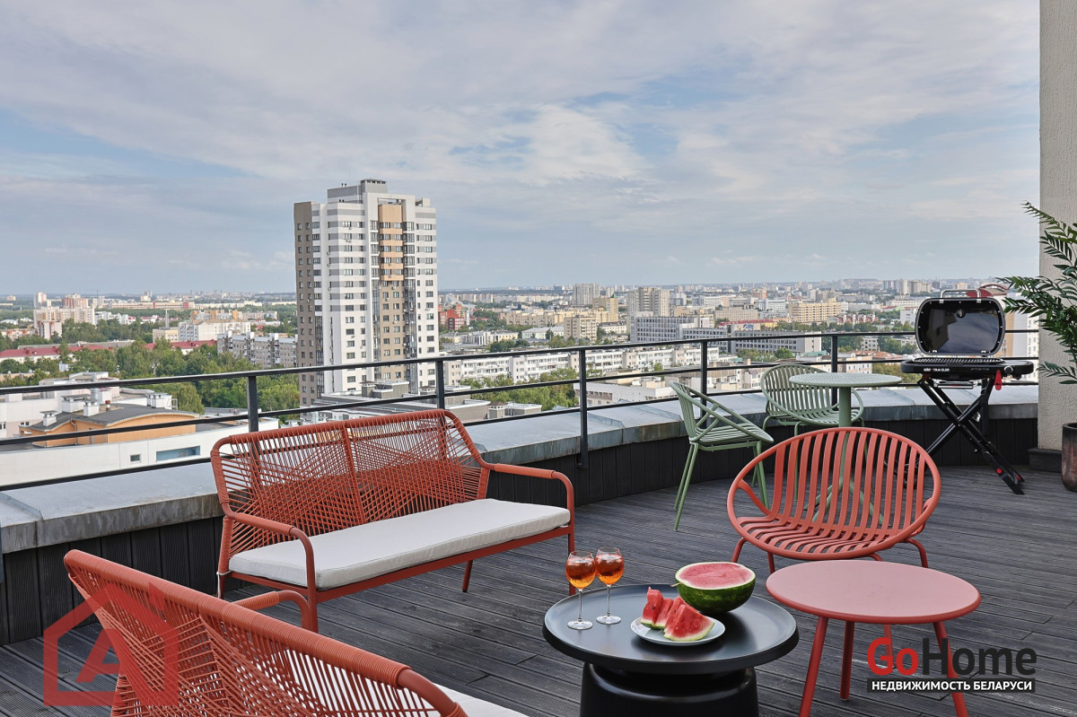 Продается двухуровневая квартира на последнем этаже (227 м²) с выходом на собственную террасу (48 м²) — это возможность совместить преимущества жизни в большом городе с комфортом частного дома. Здесь можно пить кофе, наслаждаясь утренним солнцем, загорать в тишине, играть с детьми или смотреть на проекторе фильм с друзьями.