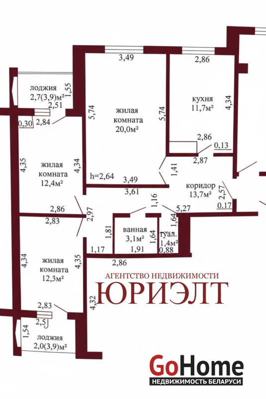 Идеальной планировкой предусмотрено: кухня 11.7 м2 в комплекте встроенная техника, спальные комнаты 12.4 м2, 12.3 м2,раздельный сан. узел.