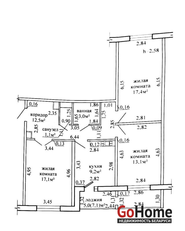 Общей площадью 73.4 м2., жилая 47.6 кв.м., кухня 9.2 кв.м. Квартира расположена на 6 этаже 7-и этажного панельного дома.