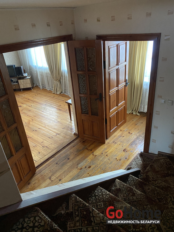 Продается кирпичный дом с мансардным этажом в п.Междуречье 2000 г.постройки. В доме 5 комнат, 3 санузла, гардеробная, просторная кухня-столовая, баня, бассейн, гараж на 2 автомобиля, терраса, веранда, подвал. На огороженном участке в 11 соток расположен сарай, вольер, навес, уложены дорожки, разбиты цветники. Дом газифицирован, центральные водопровод, канализация. До г.Новополоцк 7 км. Лес и водоемы рядом. Прекрасное место для жизни за городом. Рассмотрим также обмен на квартиру с вашей доплатой.