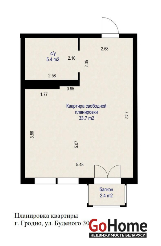 Просторная квартира-студия с высокими потолками в современном доме повышенной комфортности по улице Буденного 30 в г. Гродно