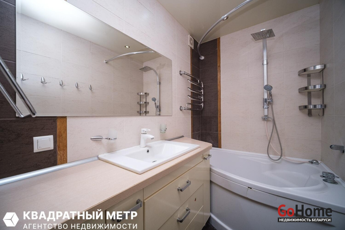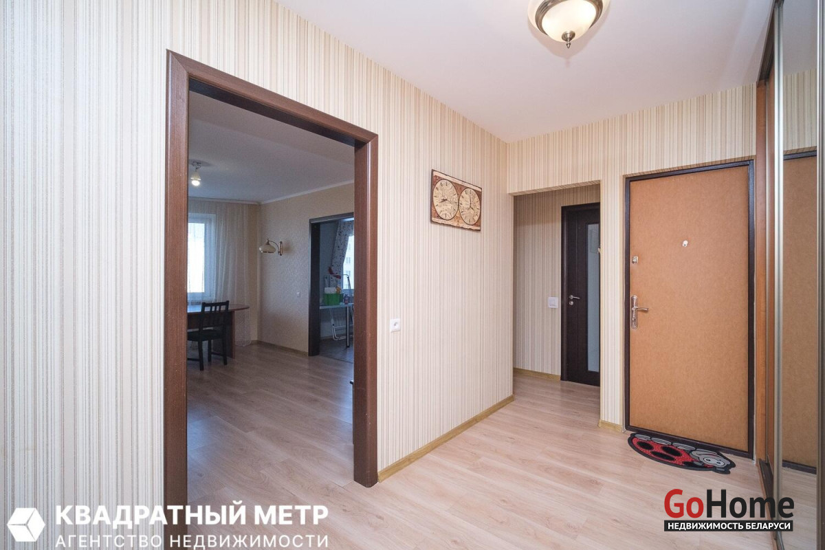 Расположена в доме с улучшенной планировкой: большие окна, вместительная гардеробная, высокие потолки, просторная лоджия, раздельные санузлы. Две квартиры в тамбуре с дополнительными шкафом и местами для хранения. Удобная разводка электрики из меди, с усиленной изоляцией, отдельные УЗО на энергопотребляющие приборы. Межкомнатные двери из массива. В отделке использованы качественные импортные материалы (в спальнях экологичное пробковое покрытие пола от «Wicanders») и хорошая сантехника -все для Вашего комфорта и уюта. В квартире регулируемое отопление. Установлены фильтры очистки воды. Охраняемая закрытая территория, чистота в благоустроенном дворе и в подьезде, удобные парковки, детские площадки. Магазины, разнообразные услуги, сады, школы-поликлиника, прогулочная зона возле озера-все поблизости. Автобусная остановка в 5 минутах от дома. До метро Слуцкий Гостинец- 4 остановки -11 минут езды на автобусе (ходят каждые 15 минут) + маршрутка, а пешком можно дойти за полчаса. Выезд на МКАД, до которого всего 5 минут езды, позволяет быстро доехать в любую точку Минска.