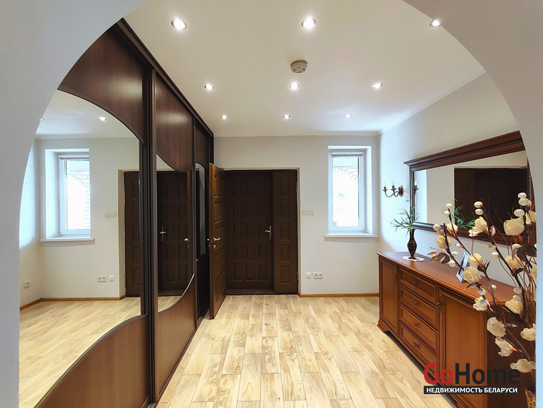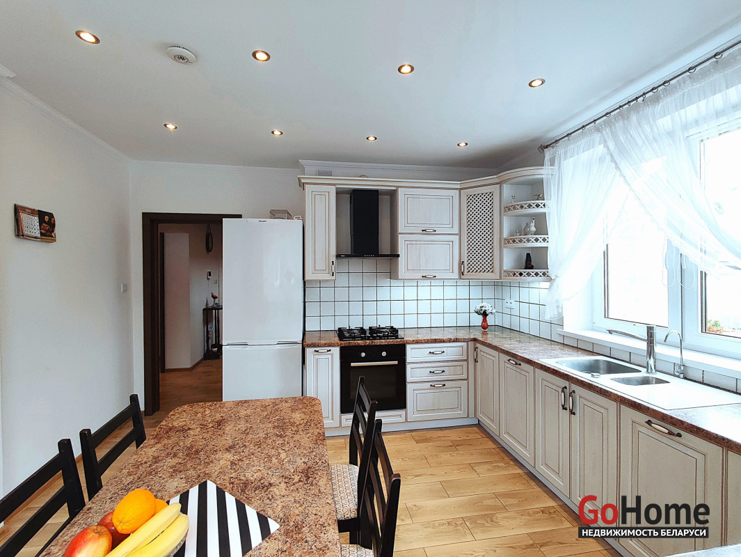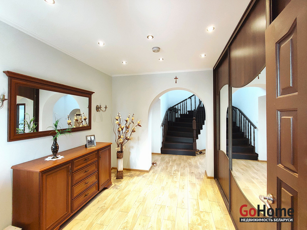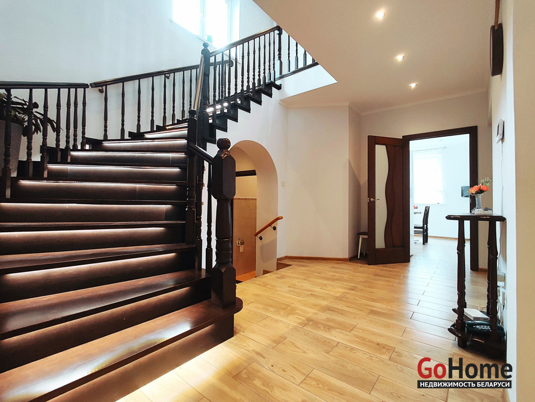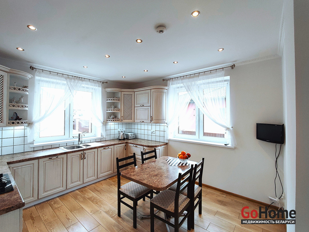 На первом этаже кухня 14 м2 со встроенным кухонным гарнитуром из массива, полностью с мебелью и бытовой техникой, гостиная с действующим камином 35 м2.. Отделка выполнена с элементами стиля лофт из лучших элементов и материалов. Эргономичная планировка вмещает в себя 7 жилых комнат, 3 просторных ванных комнат с сантехникой премиум-класса. Состояние дома идеальное. Светлые тона и высокие потолки создают пространство и воздушность помещения. Из дома есть выход на внутренний двор. Участок выровнен, облагорожен, установлена сливная система. На участке отдельно построено здание 67 м2. Участок крайний огражден.
