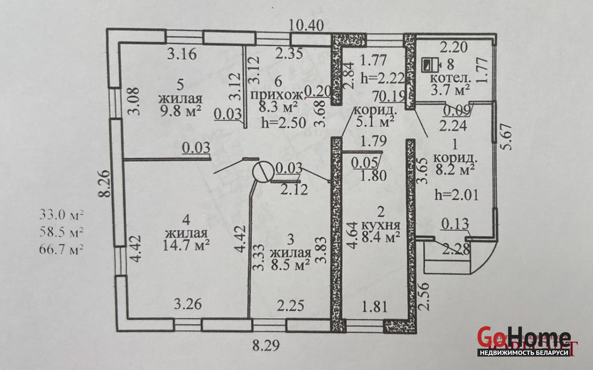 Деревянный, обшит кирпичом, паровое отопление, вода центральная, канализация местная.
