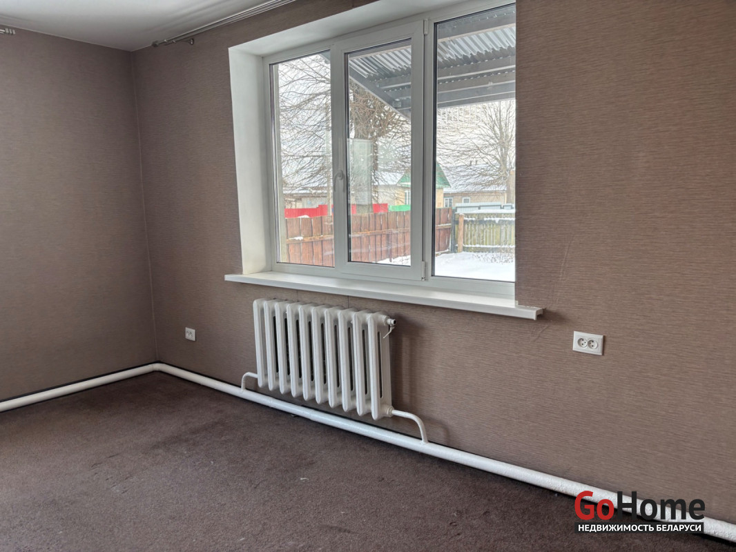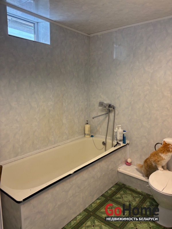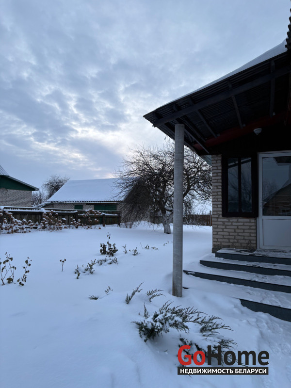 В доме три жилые комнаты, большая столовая соединенная с кухней, санузел совмещённый, имеются две кладовые комнаты. В спальне и прихожей установлены встроенные шкафы. Вся мебель и техника остаётся покупателю. Имеются два входа,везде установлены окна ПВХ.В комнатах натяжные потолки,на полу застелен ламинат.Заменена новая проводка.Отопление газовое и есть котел на твердом топливе, подогрев воды от газовой колонки.Центральное водоснабжение,выгребная яма.Имеется гараж с погребом, хозпостройка.