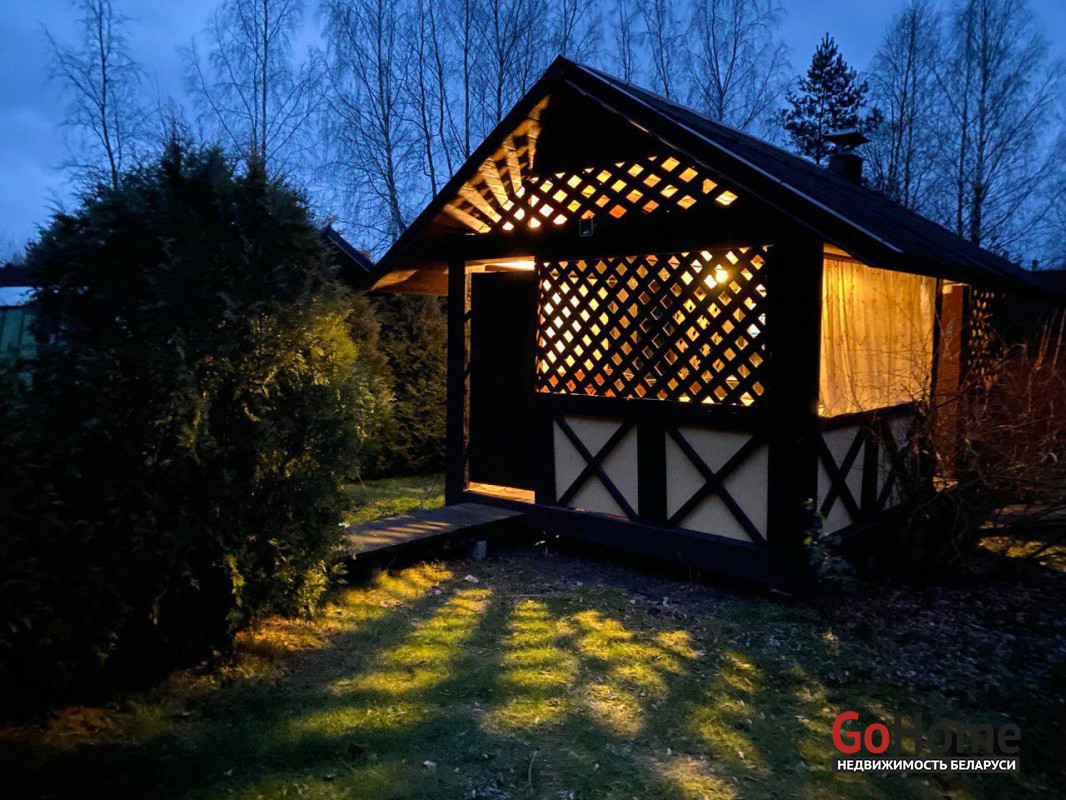 Участок утопает в зелени, здесь растут плодовые деревья, хвойники, цветы, а также есть огород. За забором — сосновый лес, а с другой стороны дома — один сосед, что обеспечивает полное уединение.