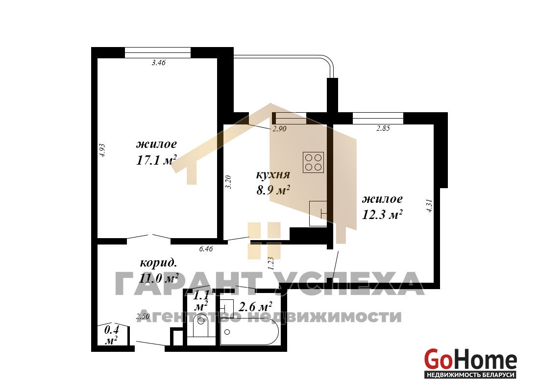 ЧУП «Гарант успеха», УНП 290472700, лицензия № 02240/137 от 20.10.2006 г., договор на оказание риэлтерских услуг №8/2 от 07.02.2026 г.