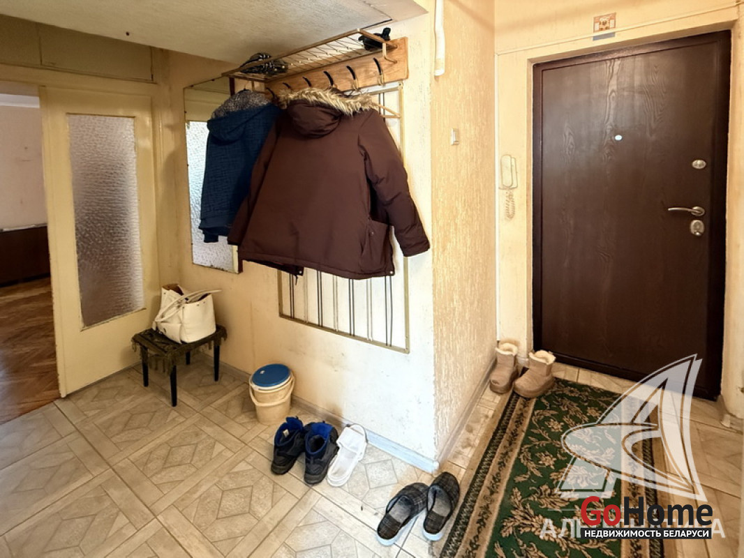4-комнатная квартира, г. Брест, ул. Советской Конституции, 1970 г.п., 2 / 5 панель, 58,8 / 57,9 / 42,6 / 5,4, санузел раздельный, балкон застеклен, подвал, стеклопакеты (частично), деревянные межкомнатные двери, входная дверь металлическая, потолки (2,6 м) - побелка, снежка и панели (в ванной), полы - паркет (в комнатах) и плитка (в кухне, в коридоре), стены оклеены обоями, телефон, домофон. В квартире требуется ремонт. Квартира расположена на две стороны. Произведено утепление боковых фасадов дома. Система видеонаблюдения (в подъезде, на парковке). Лот - 260168