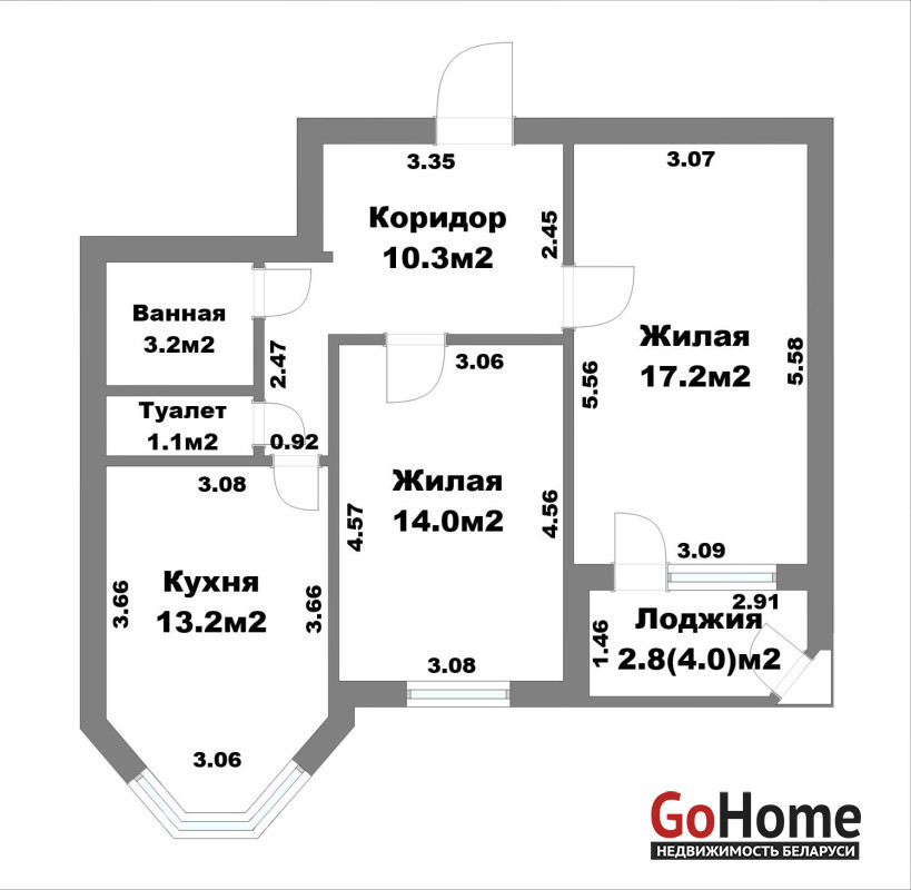 Площадь по СНБ 61.9 м2, общая 59 м2. жилая площадь: 31.2 м2. кухня: 13.2 м2.