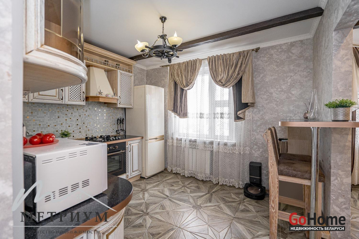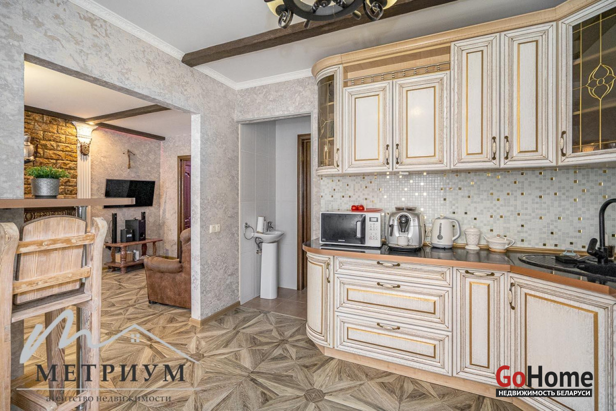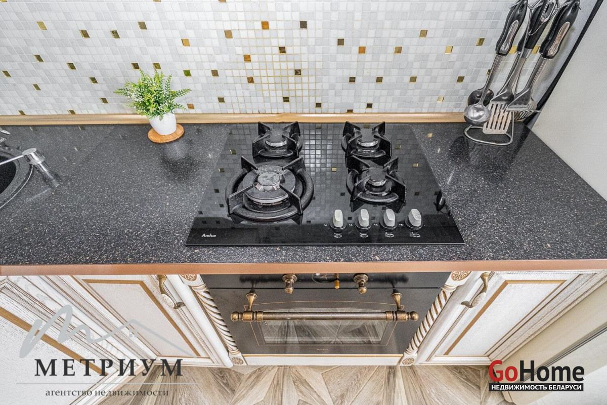 В квартире выполнен качественный ремонт. Есть вся необходимая мебель и техника. Кухня и двери массив.