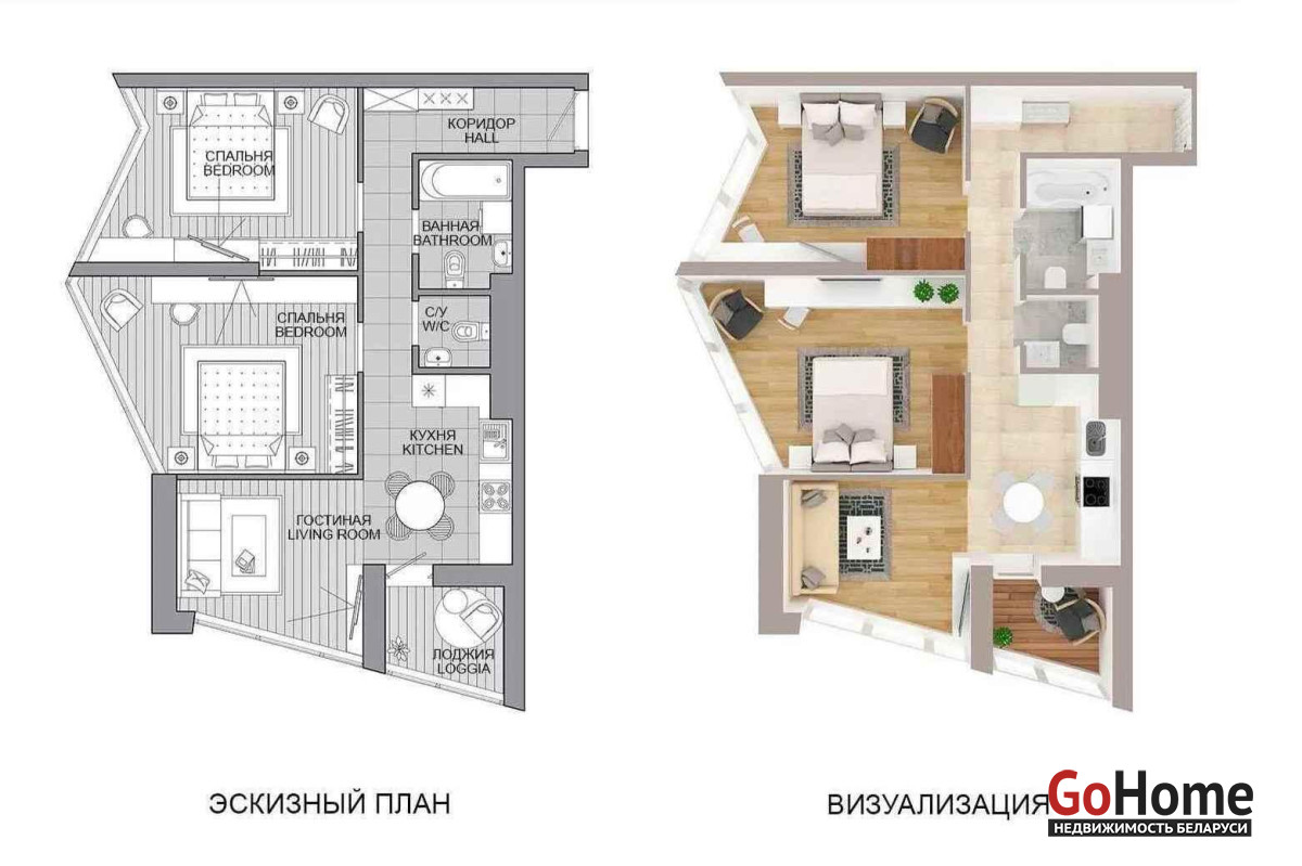 ️ 3-комнатная квартира 65,2 кв.м. в ЖК Минск-Мир, район Южная Америка. Новостройка с черновой отделкой, панорамными окнами на две стороны, рядом метро «Аэродромная», торговая и социальная инфраструктура. Современный дом «Богота» с лифтами, безопасностью и дизайнерским лобби.