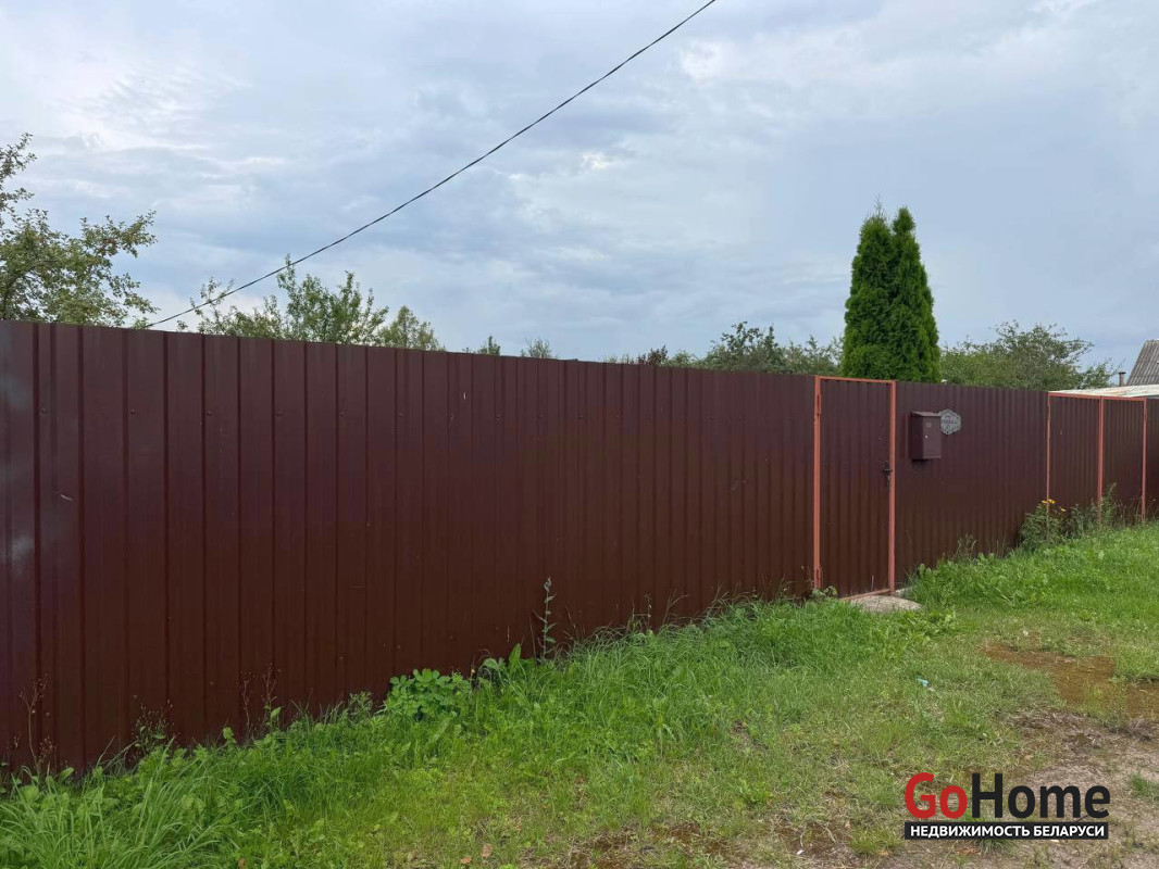 Дом расположен на большом участке площадью 0.12 га, который огорожен забором из металлопрофиля.