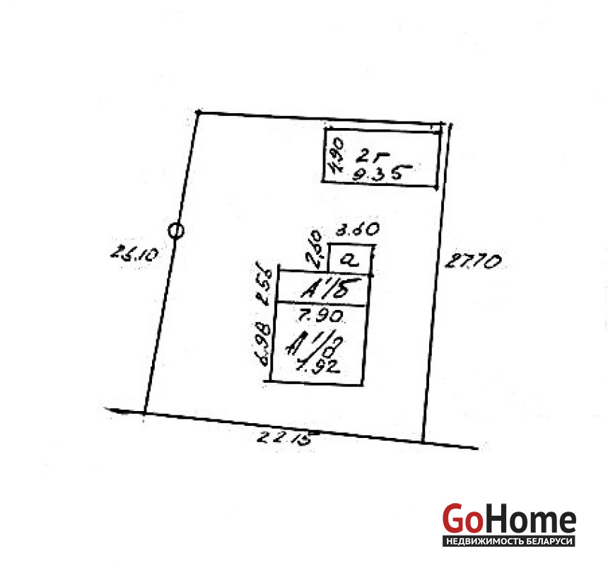 Площадь земельного участка составляет 6 соток. На территории находится блочная хозяйственная постройка.