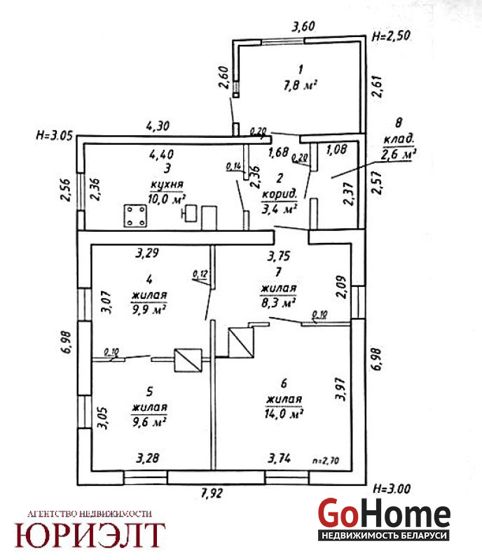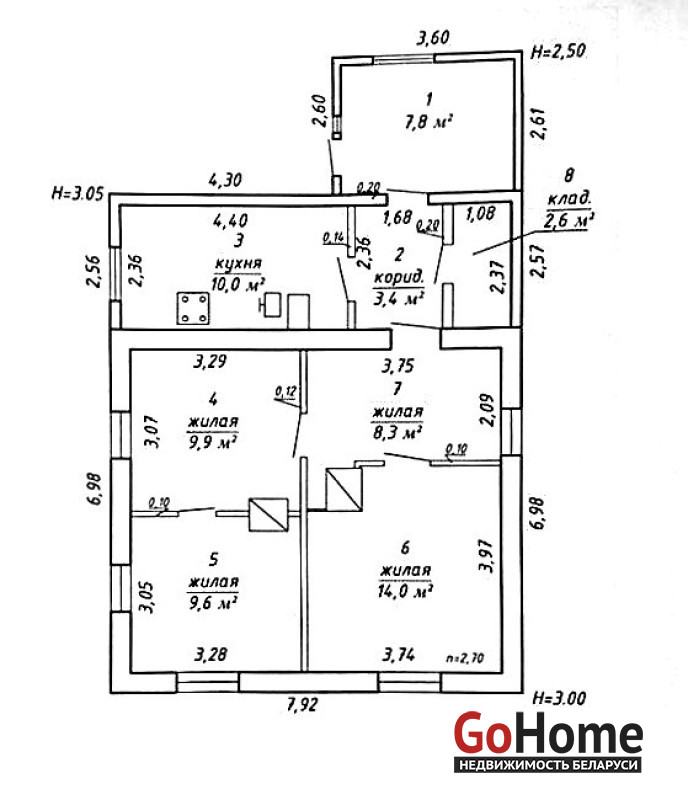 Общая площадь по СНБ - 66.1 м², общая жилая – 58.3 м², жилая – 41.8 м², кухня - 10 м².
