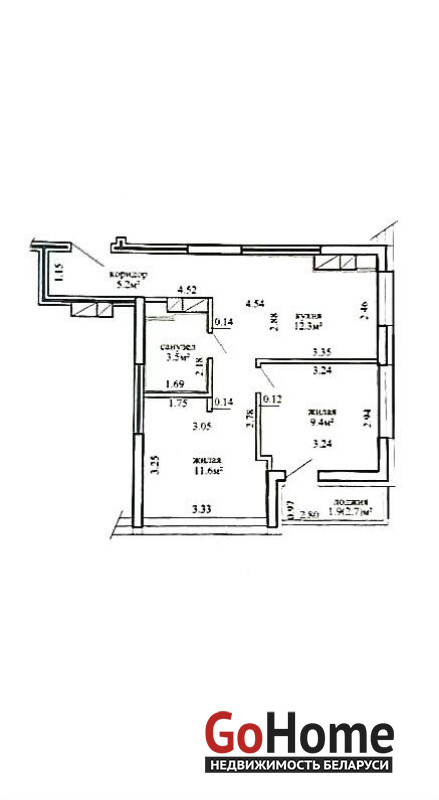 ✓ Две изолированные комнаты (11,6м2 и 9,4 м2) и кухня (12,3 м2).