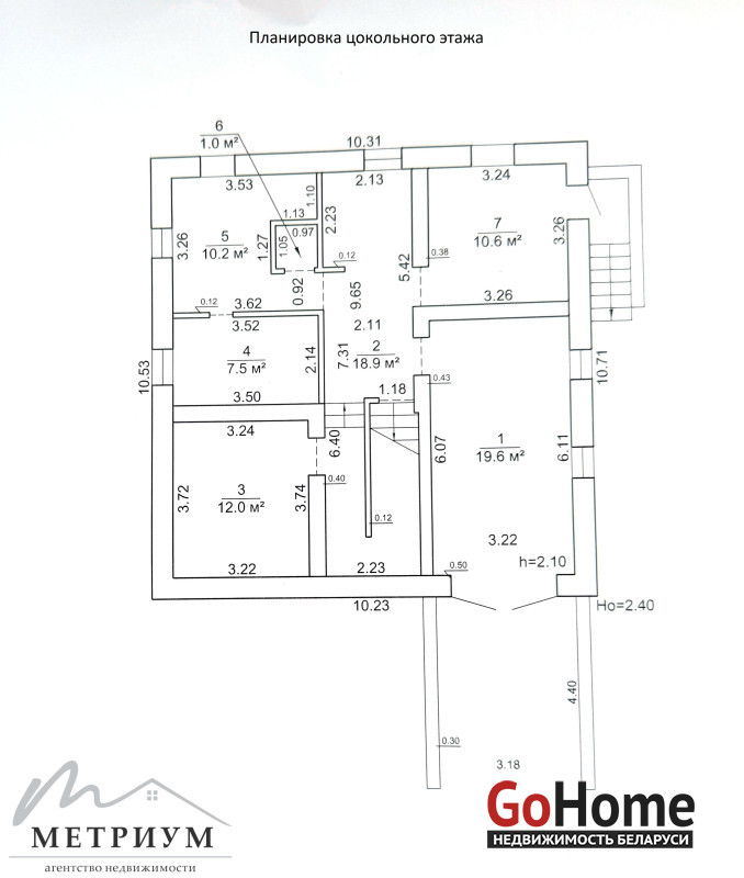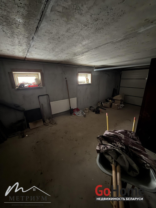 Цокольный этаж: отапливаемый гараж, котельная, подсобные помещения. Высота потолков 2,10 м.