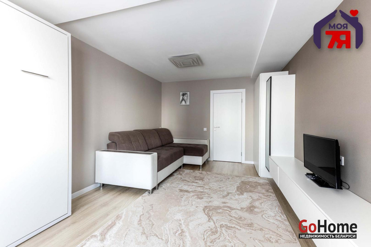 -Квартира с отличным ремонтом, находится на 7 этаже 10-этажного дома 2018 года постройки.-Планировка удачная и практичная - две изолированные комнаты, каждая со своим полноценным пространством, что особенно удобно для семьи.-Кухня 9,2 кв.м. - просторная и светлая, а выход на застеклённую лоджию делает кухню ещё функциональнее. Лоджия утеплена, двухкамерные тонированные стеклопакеты, установлен обогреватель и интерьерная подсветка, турник, потолок гипсокартонный, на стенах декоративная штукатурка. Отлично подходит для использования под хранение, рабочее место или зону отдыха, и всё это - прямо рядом с кухней, без лишних переходов. -На кухне есть встроенная техника; варочная панель, вытяжка, посудомоечная машина, микроволновка, телевизор, установлены две подсветки с датчиком «взмах руки». Пол: итальянская плитка с подогревом. - В санузлах импортная сантехника, инсталляция, потолки натяжные. В ванной установлена вентиляция, управление которой осуществляется с пульта. -В квартире предусмотрено всё для удобства - в спальной комнате установлен кондиционер (который в жаркие дни успешно охлаждает воздух во всей квартире), стеклопакеты с москитной сеткой (в каждой комнате), а также шкаф-кровать трансформер. На всех батареях есть регуляторы отопления. Входная дверь в квартире металлическая со встроенным зеркалом, с хорошей тепло- и звукоизоляцией. -В квартире установлена кнопка «мастер-выключатель», которая позволяет перекрыть водоснабжение и обесточить всю квартиру, за исключением холодильника, что крайне удобно в период длительного отсутствия хозяев дома. -Тамбур на две квартиры, также с металлической входной дверью и встроенным шкафом для хранения вещей. -Чистый, аккуратный подъезд с вежливыми и спокойными соседями. В подъездах и вокруг дома организована система видеонаблюдения, (через приложение в смартфоне есть доступ к камерам видеонаблюдения). Имеется парковка вокруг дома. -Жилое пространство находится вдали от оживленных дорог, обеспечивая тихое и комфортное проживание.- В районе прекрасная инфраструктура. Благоустроенный двор с детской площадкой. Рядом супермаркет «Евроопт», парк отдыха "Яблоневый сад", зоомагазин, тренажерный зал, школа с бассейном, детские сады, салонные услуги, центры доставки товаров от маркетплейсов «Озон» и «Вайлдберриз», аптека.- Дом находится вблизи трёх остановок городского транспорта.· до ст.м. "Каменная Горка" и "Петровщина" составляет примерно 15 минут езды общественным транспортом,· Доступность подъезда к кольцевой автодороге.