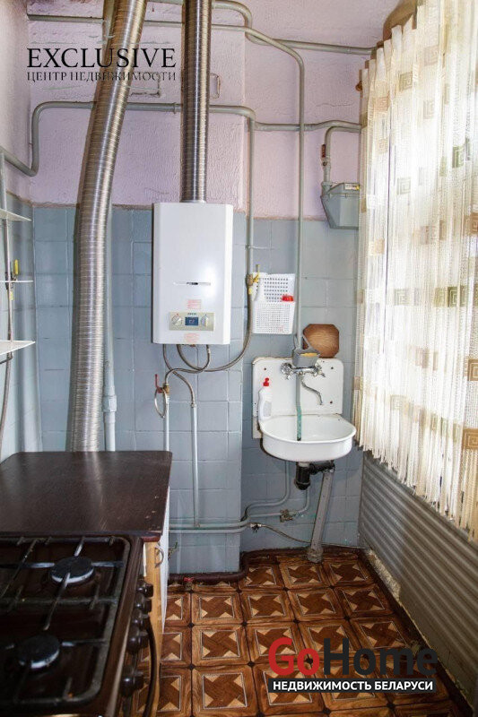 Подведены все коммуникации: канализация - центральная, водоснабжение - центральное, установлены колонка и газовый котел.