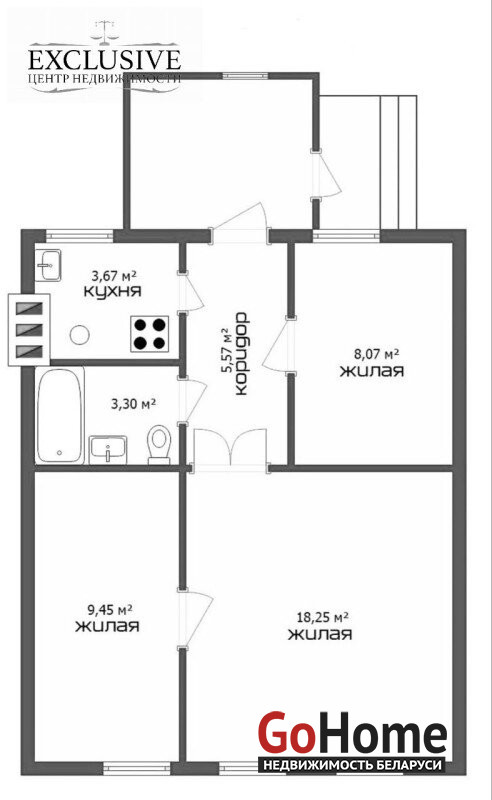 Общая площадь - 48.32 м2, жилая- 35.78 м2, кухня - 3.67 м2.