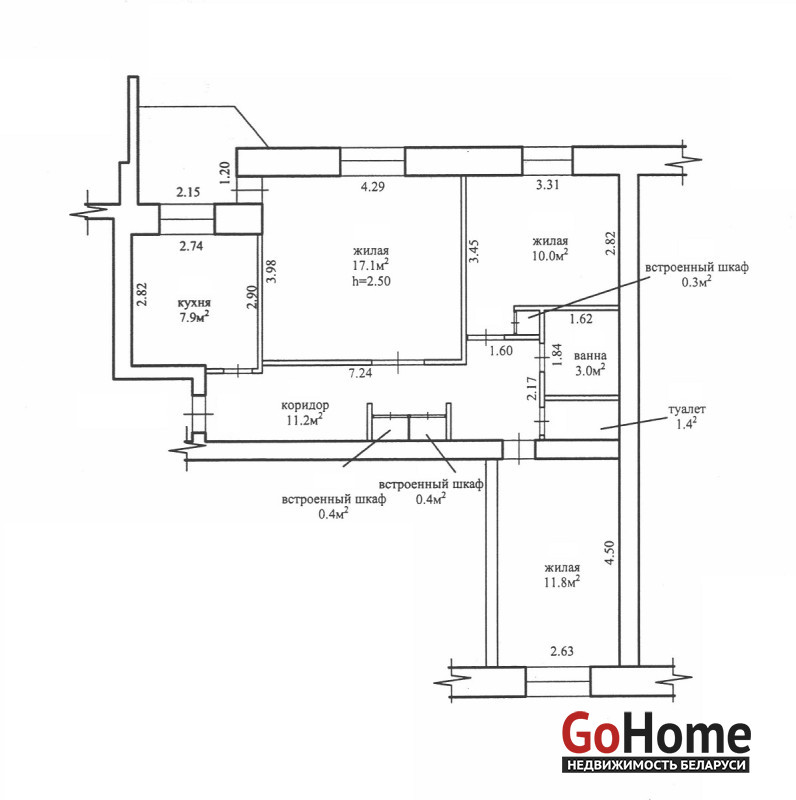 - стандартная планировка квартиры площадью 63,5 кв.м с лоджией;