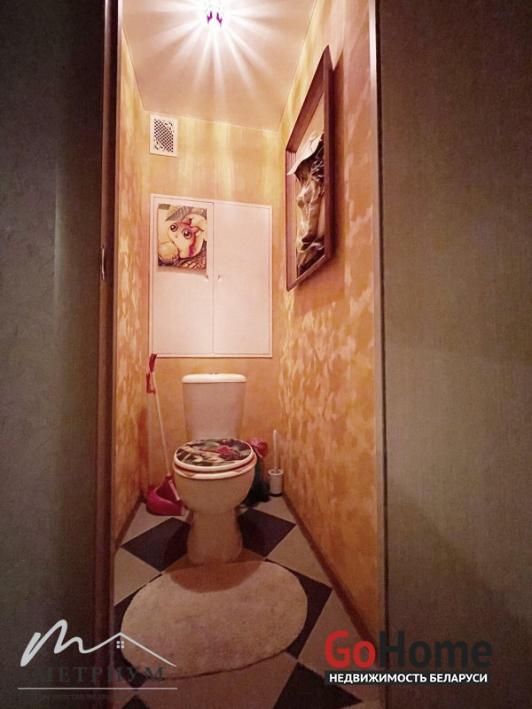 Санузел облицован современной плиткой, раздельный, установлены счетчики учета воды. Ванна достаточно просторная – 3,3 м2 и функциональная.