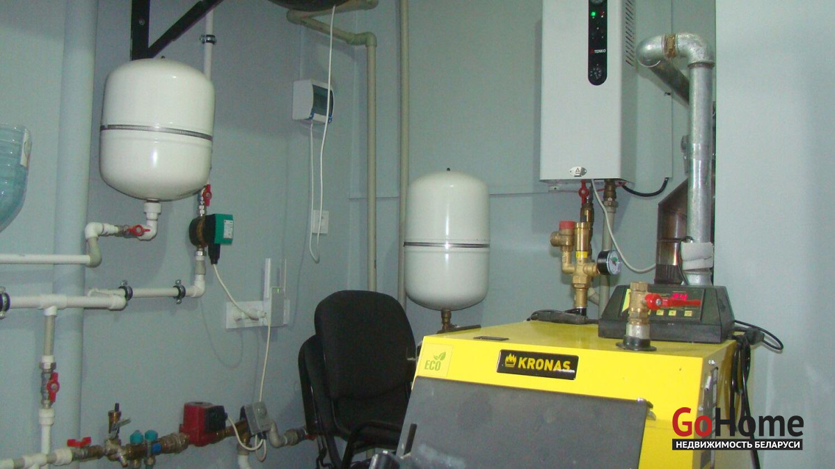 Отопление- два котла (твердотопливный, электрический) с лучевой системой подключения радиаторов.