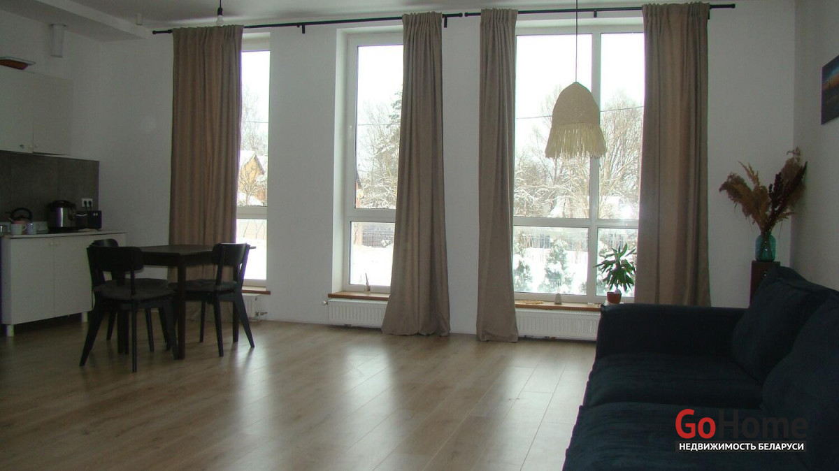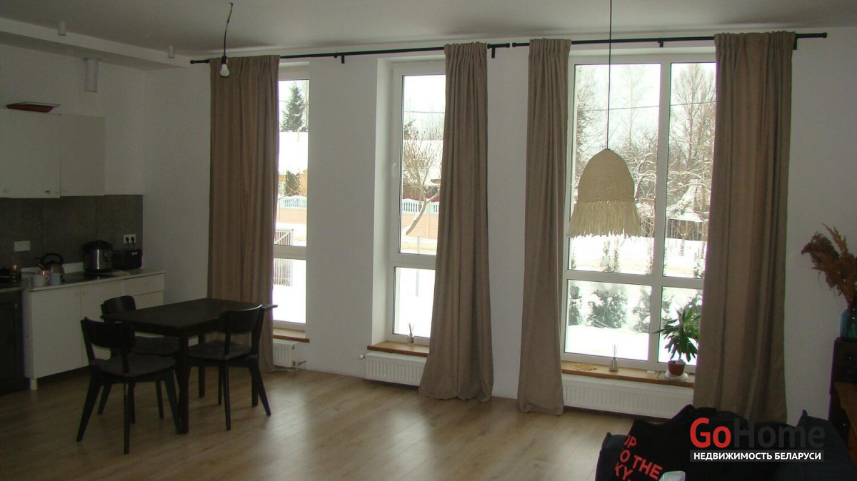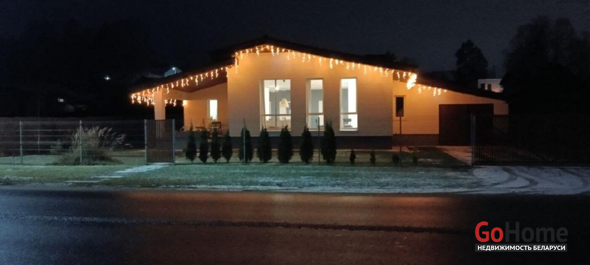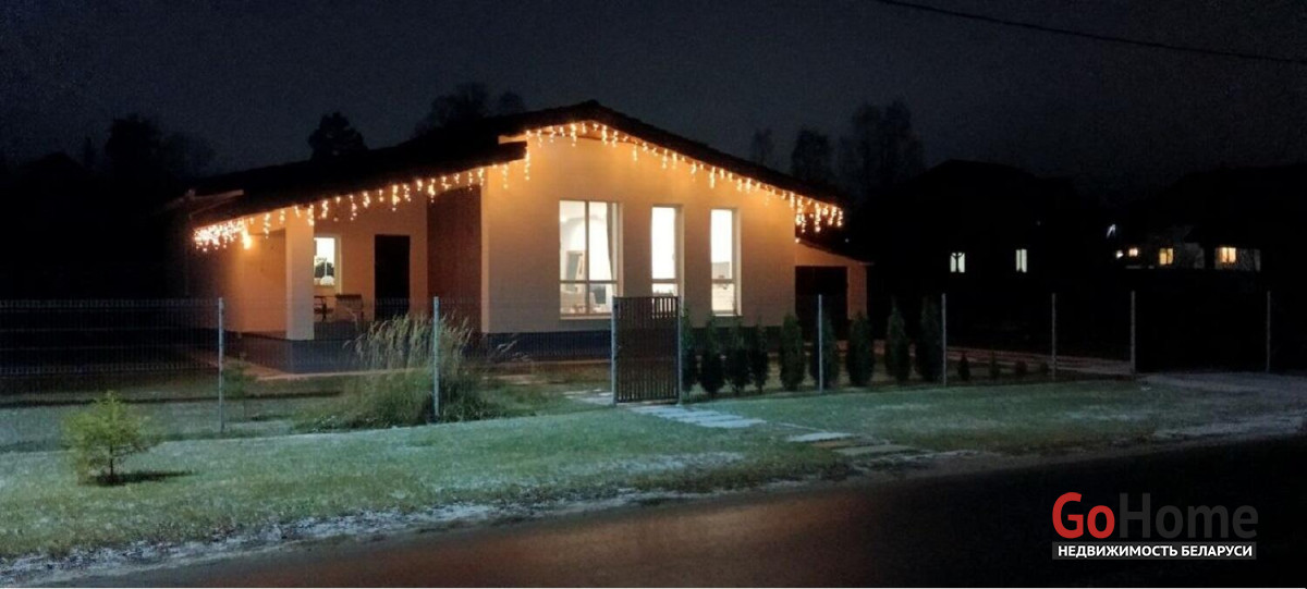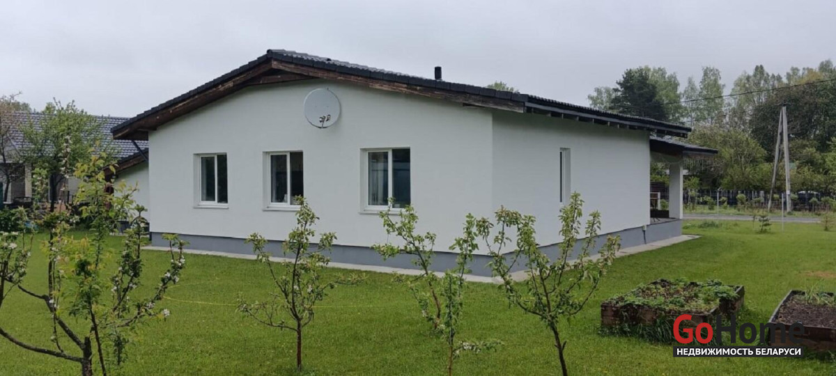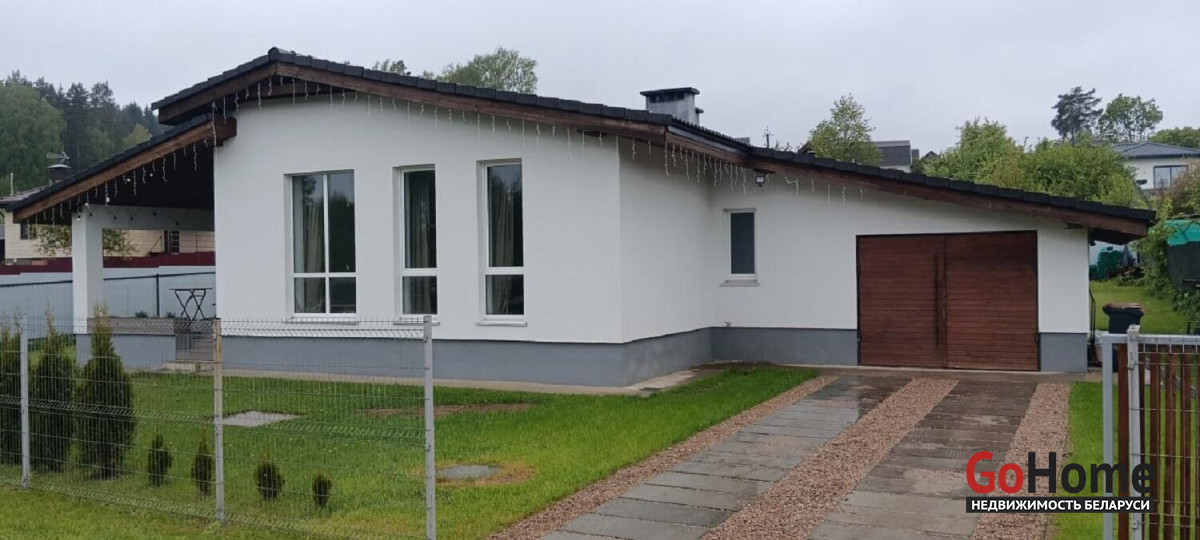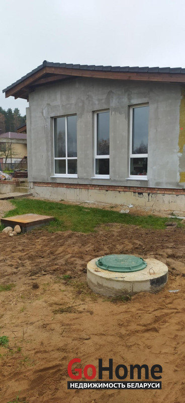 Участок огорожен, правильной формы, к дому идёт асфальтная дорога. Хорошее транспортное сообщение, в 10 мин. остановка для электрички «Направление Минск-Молодечно». В шаговой доступности лес и Минское море.