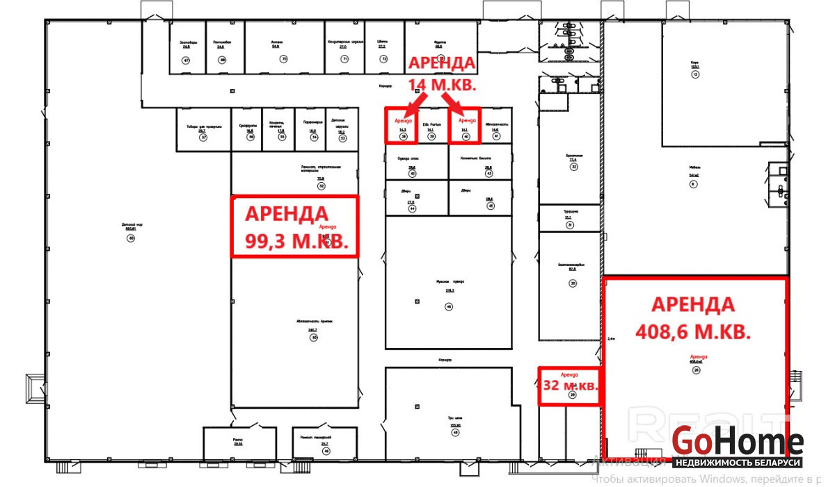 Помещения от 14м2 до 408 м2.