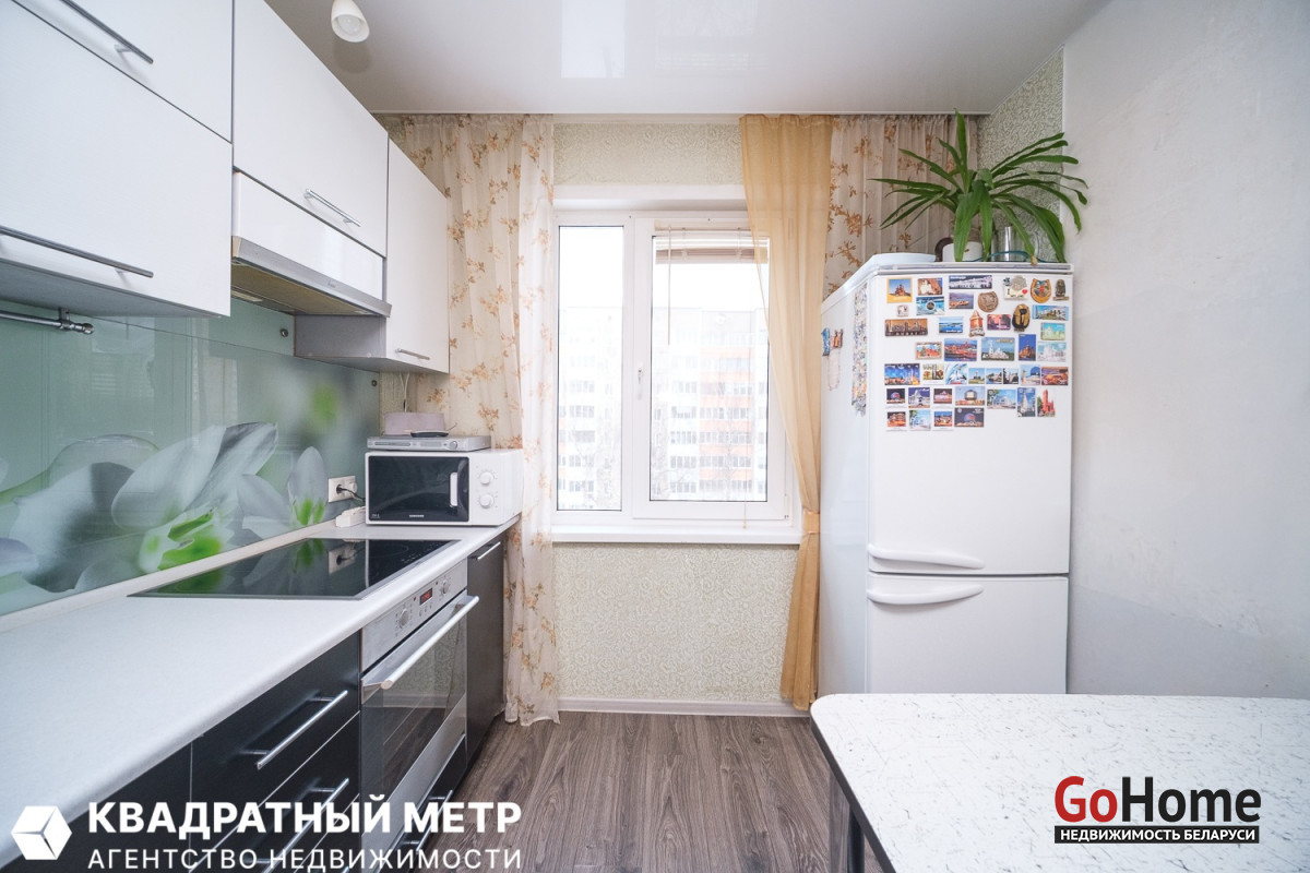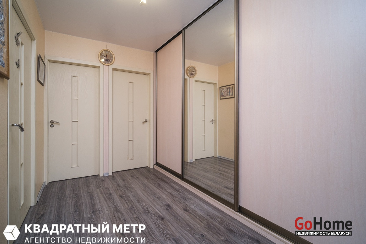 В квартире с отличной планировкой-большие качественные окна с детскими замками, вместительные шкафы купе, просторная оборудованная лоджия, раздельные санузлы. Напольное покрытие – красивый импортный ламинат 32 класса. Хорошие межкомнатные двери. Надежная входная дверь. Две квартиры в тамбуре с дополнительными местами для хранения. Хорошие соседи. Аккуратный подъезд с широкими лестничными пролетами. Благоустроенный двор оборудован детскими площадками. С обратной стороны дома, куда выходит балкон –под окнами- мини-парк и зеленая зона, за которым прогулочная аллея, за ней-школа, за школой- стадион. За соседним домом детский сад. В другом конце нашего дома на первом его этаже-магазин «Соседи», почта, парикмахерская, пункт выдачи «Wildberries». В нашем районе разнообразие магазинов, услуг, своя поликлиника и даже колледж-Педагогический. А на другой стороне улицы Якубова –огромный парк, река Свислочь, прогулочные зоны на любой вкус. Автобусная остановка в 5 минутах от подъезда. Отличное транспортное сообщение: до метро «Партизанская» прямые автобусы №№ 9 и 9Д – 7 остановок – всего 14 минут (ходят каждые 15 минут). От дома до остановки трамвая и троллейбуса идти 8 минут. Это позволяет быстро доехать в любую точку Минска.