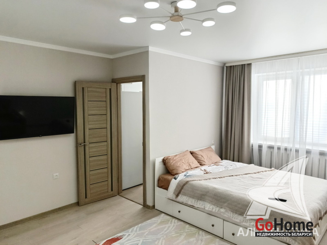 1-комнатная квартира, г. Брест, ул. Гоголя, 1966 г.п.. 2 / 5 кирпич, 30,6 / 30,6 / 20,5 / 5,2, санузел совмещенный, стеклопакеты, межкомнатные двери - экошпон, входная дверь металлическая, потолки - натяжные и снежка, полы (положены на стяжку) - ламинат, стены оклеены обоями, в санузле современная плитка, заменена сантехника, заменен полотенцесушитель, заменены сантехнические трубы, акриловая ванна, газовая колонка в кухне, проведена новая электропроводка, домофон. Кухонный гарнитур, варочная поверхность, духовой шкаф, вытяжка, шкаф-купе. Квартира с хорошим ремонтом. Все окна выходят во двор. Лот - 260184