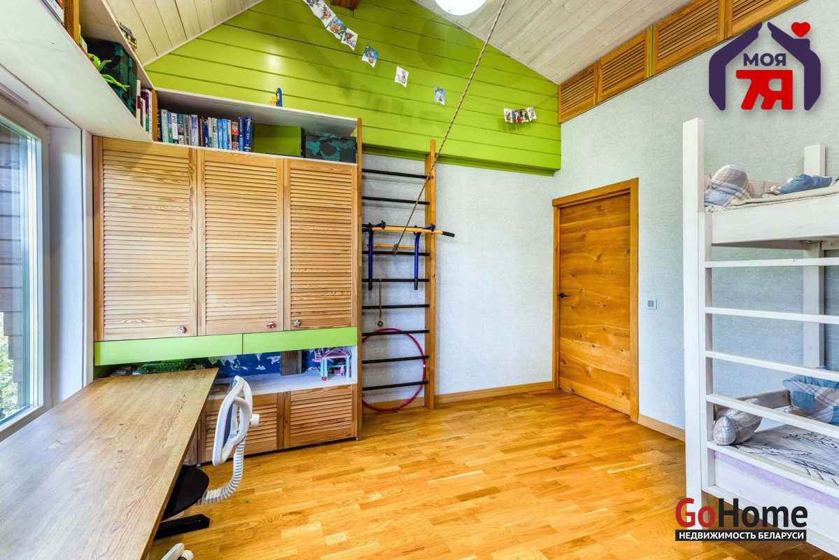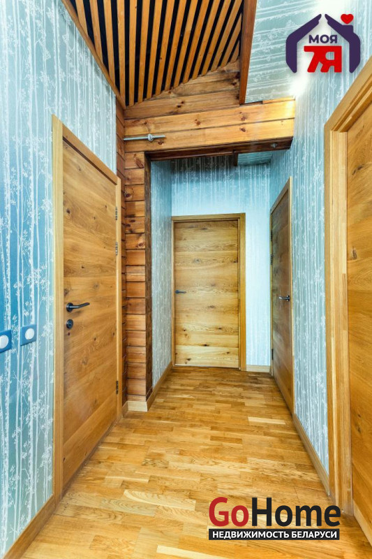 -Интерьер выполнен из качественных материалов: на первом этаже керамогранит с тёплым полом, на втором - натуральная дубовая паркетная доска. Окна из дуба с двойными стеклопакетами и инертным газом обеспечивают отличную шумо- и теплоизоляцию, а на первом этаже окна дополнительно защищены антивандальной плёнкой.