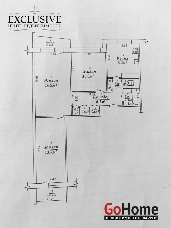 - балкон - 0,9 м2