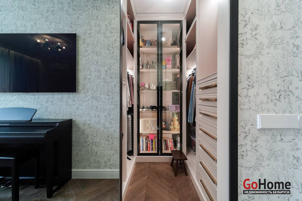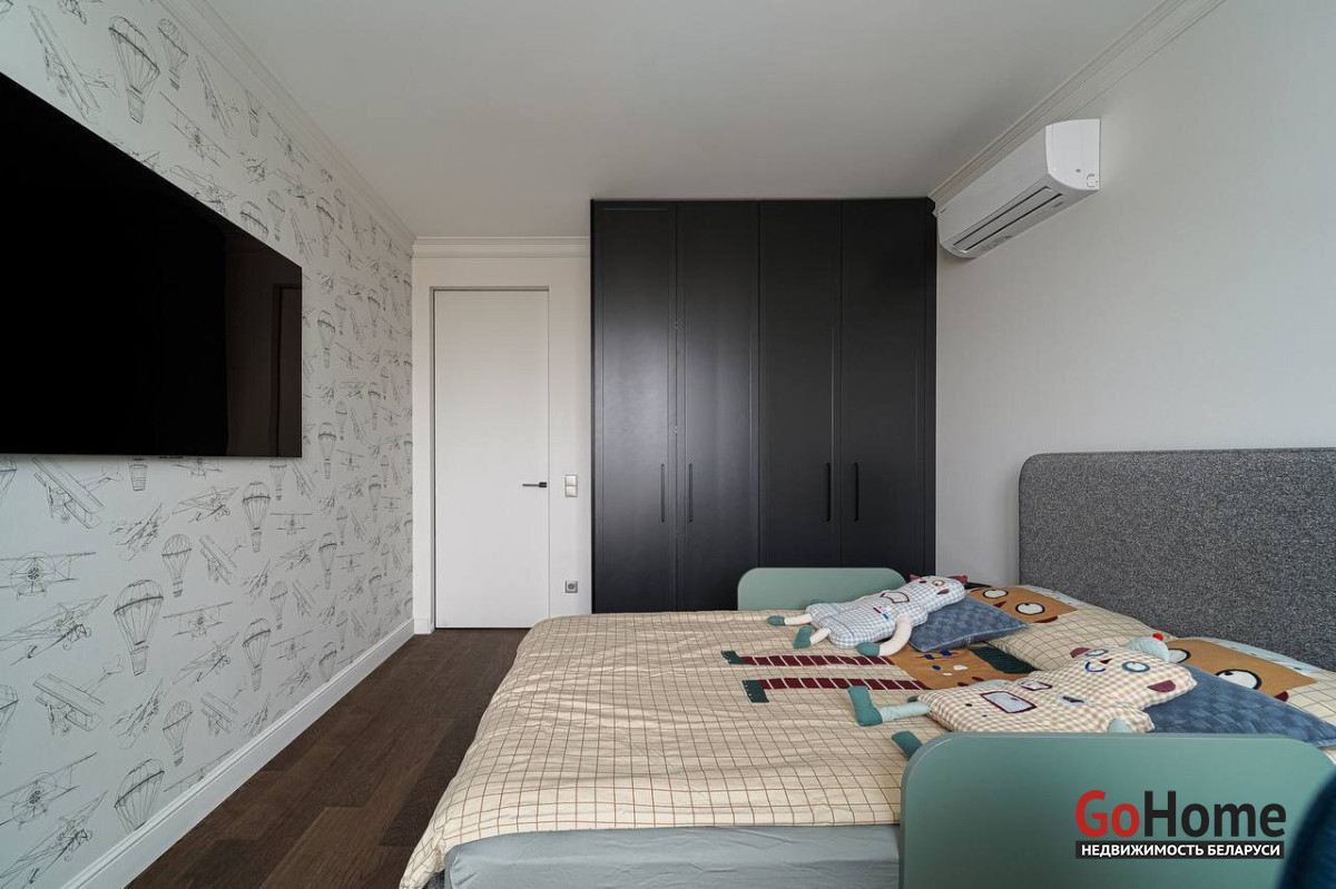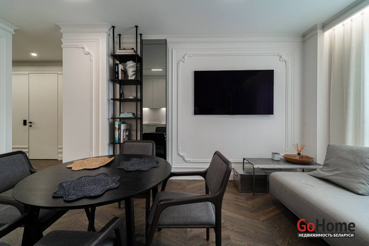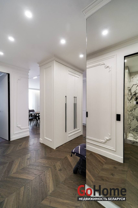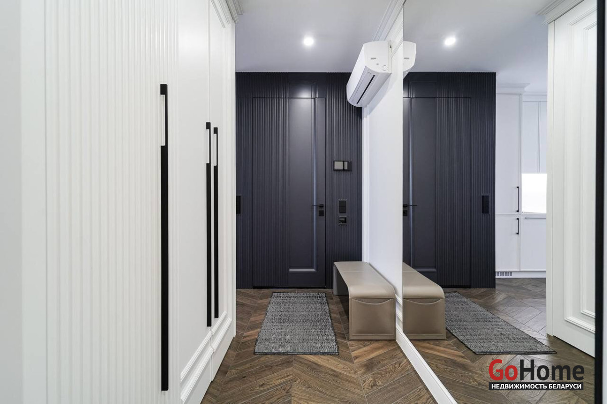 Ремонт выполнен в нейтральных тонах с использованием премиальных европейских материалов.