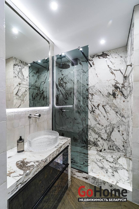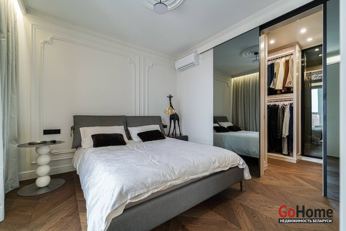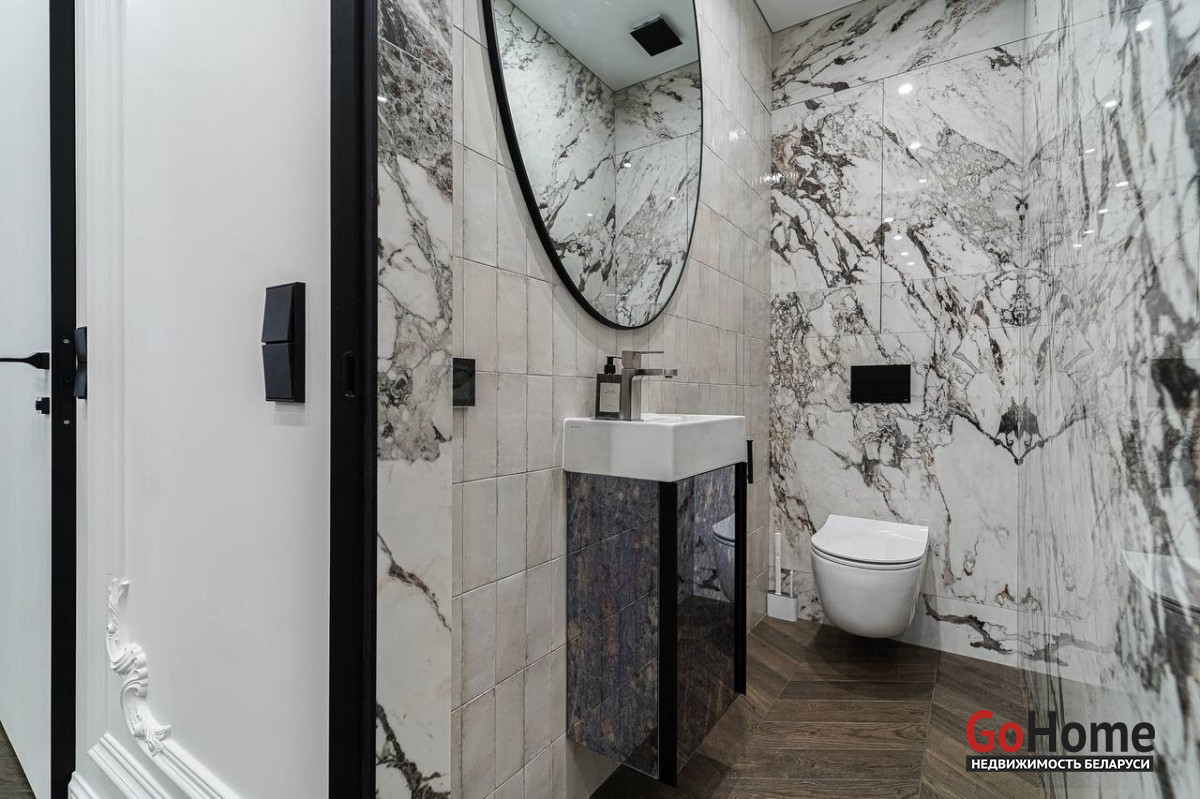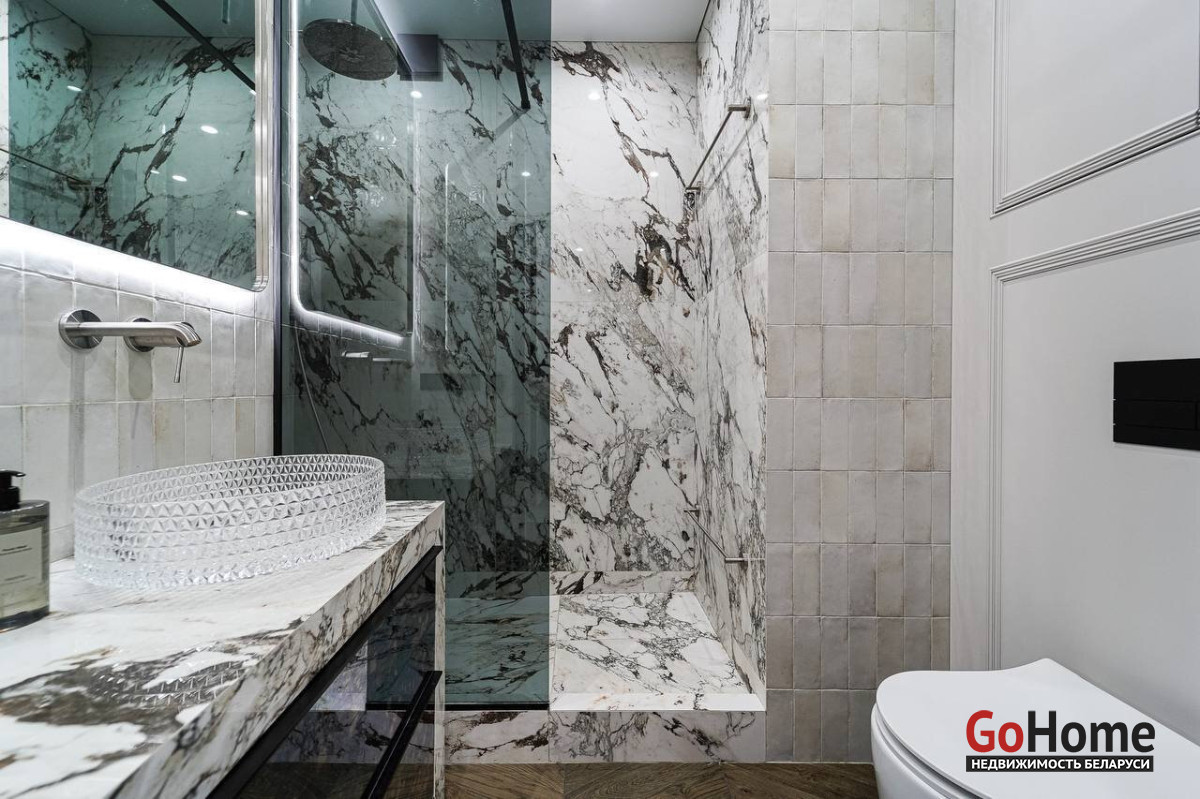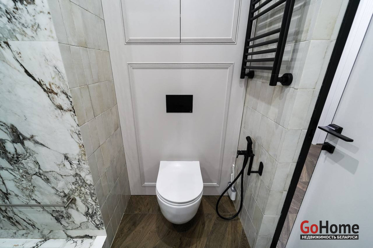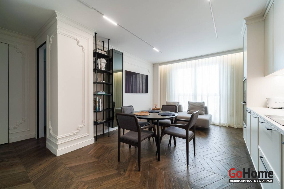 Ремонт выполнен в нейтральных тонах с использованием премиальных европейских материалов.