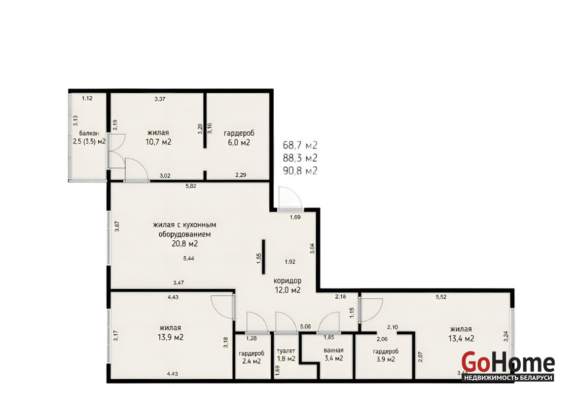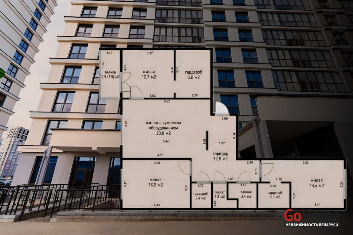 · 4-комнатная планировка(3 изолированные спальни + просторная кухня-гостиная)