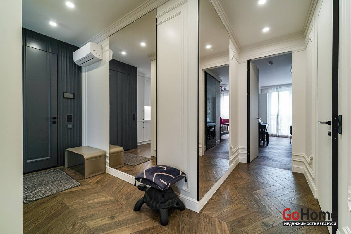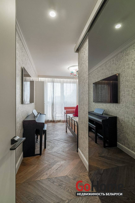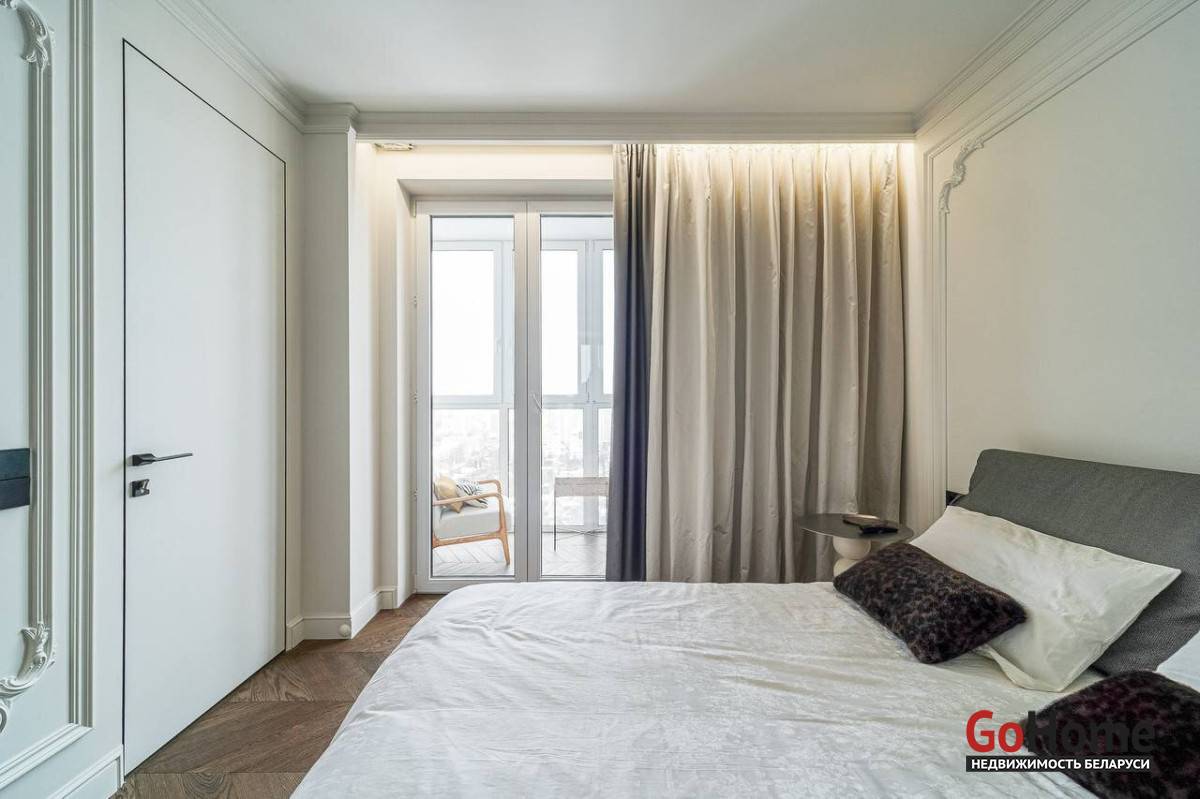 4-х комнатная квартира с панорамным видом. Находится по адресу Белградская 1, в доме «Пекин», на 19-ом этаже 24-х этажного дома. Локация с идеальной транспортной доступностью. В 5 минутах ходьбы от станции метро "Аэродромная". Рядом большое количество наземного вида транспорта. До ближайших остановок 200/400 метров от дома. Отличные выезды на МКАД и пр. Независимости. Также в 5 минутах ходьбы располагается ТРЦ «Авиа Молл». (кафе, рестораны, магазины, супермаркет.)