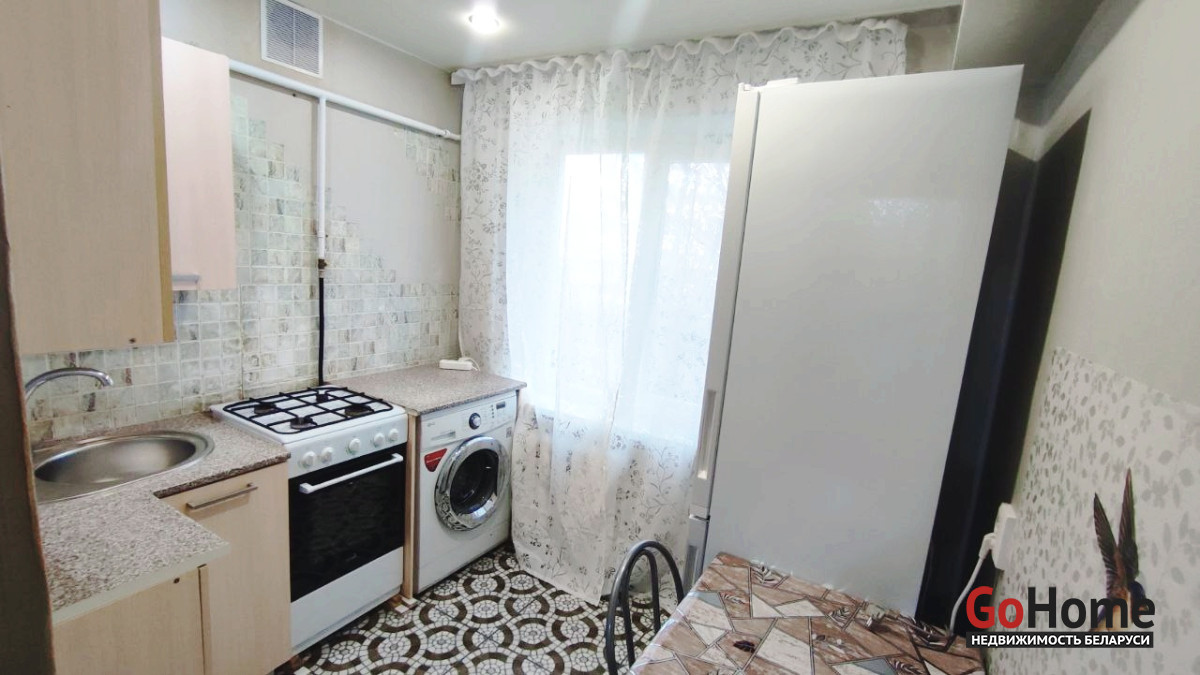 Есть холодильник, стиральная машинка, газовая плита, стол кухонный стулья кухонные.