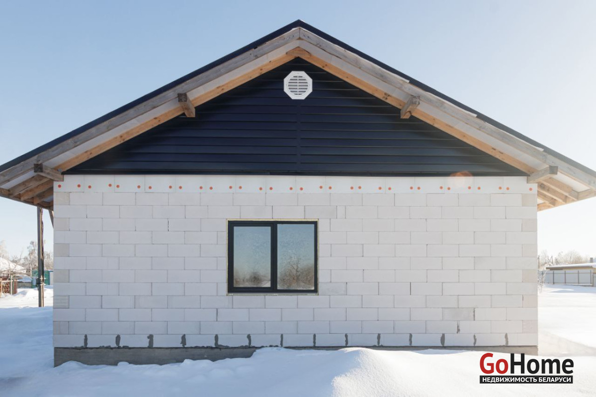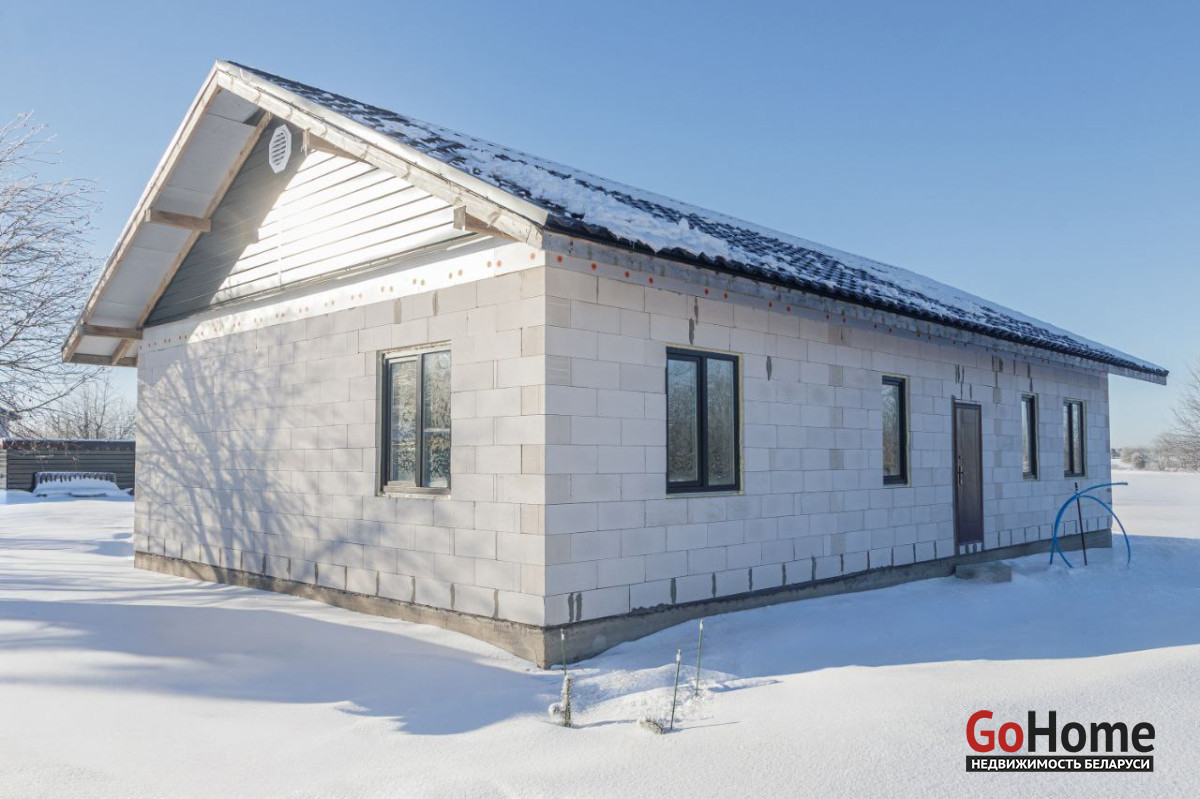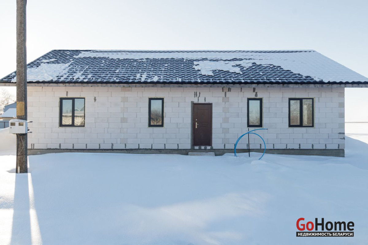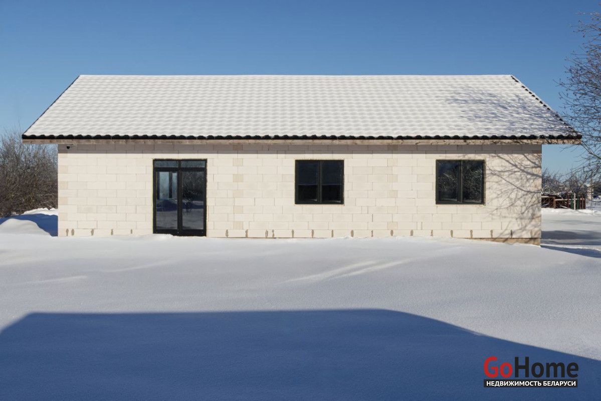 Одноэтажный дом общей площадью 124 кв.м. Несущие стены и внутренние перегородки из газосиликатных блоков, высокие потолки, крыша – металлочерепица. Рациональный проект: кухня - гостиная, санузел, котельная, 3 комнаты. При желании можно сделать мансардный этаж. На доме установлена камера видеонаблюдения.