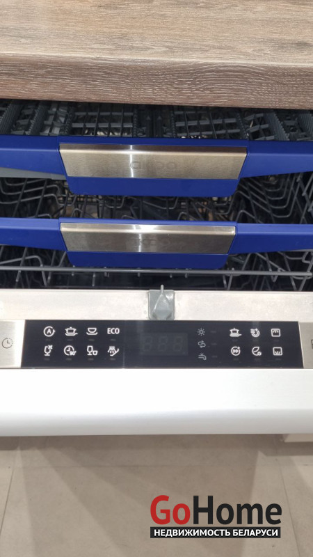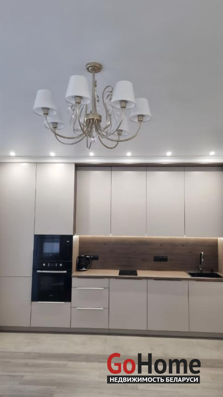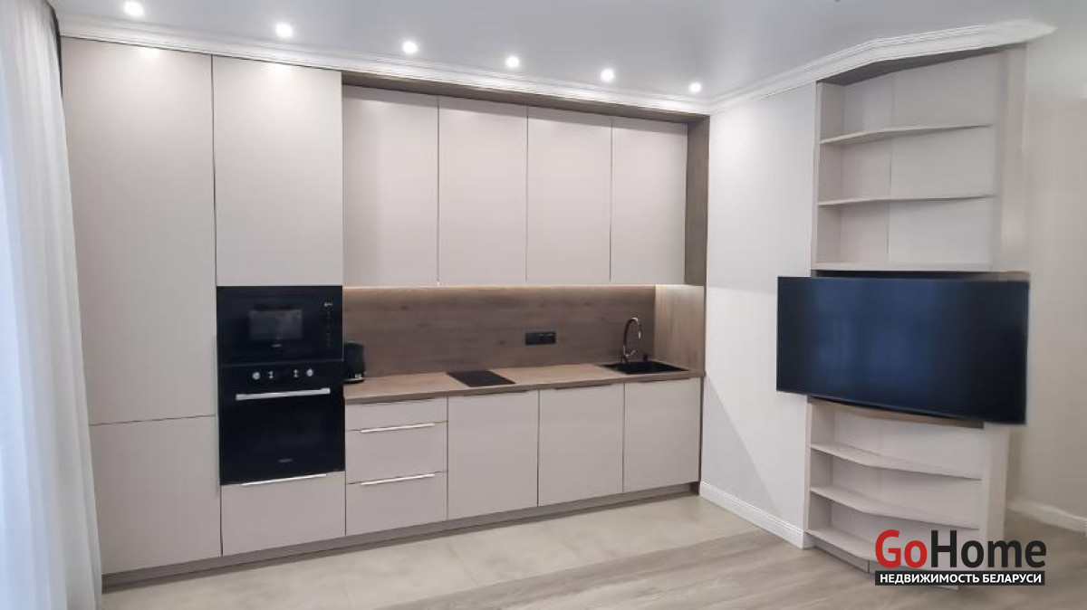 В кухонной зоне разместились встроенный холодильник, духовой шкаф, микроволновая печь, индукционная плита и бесшумная вытяжка, посудомоечная машина, эл.чайник, а также робот-пылесос.