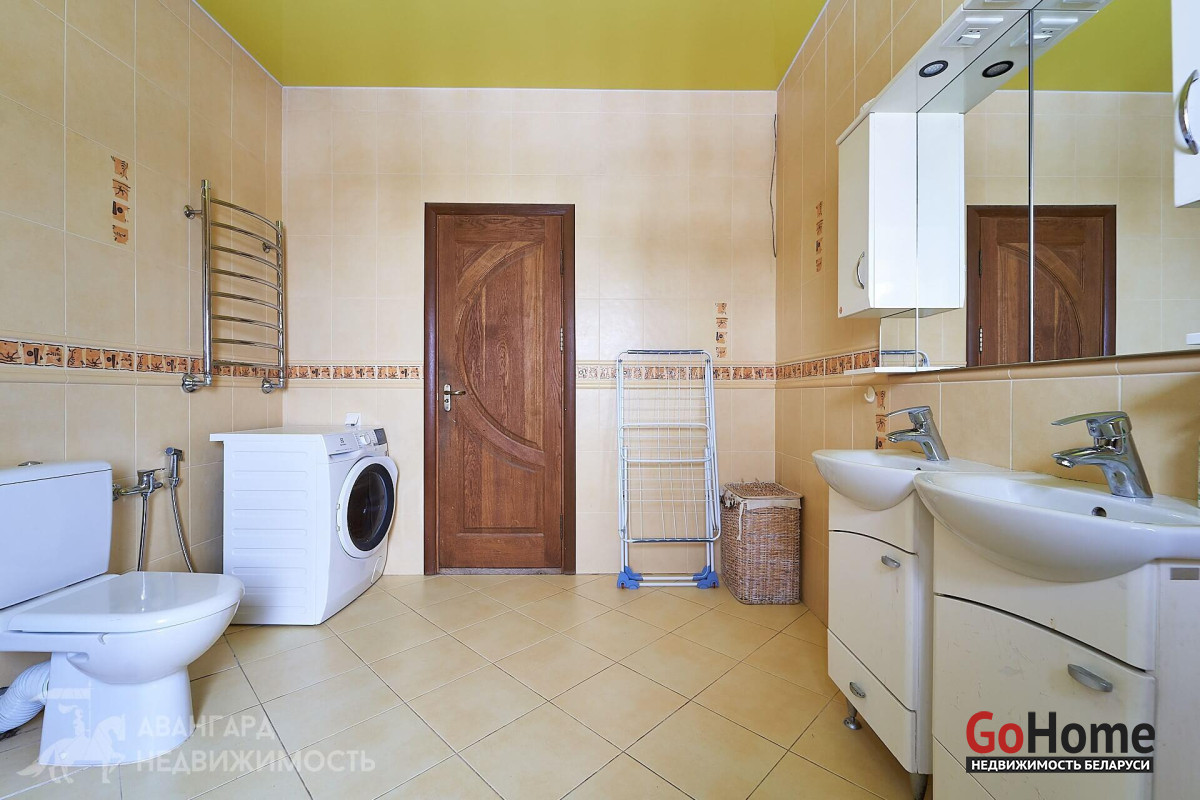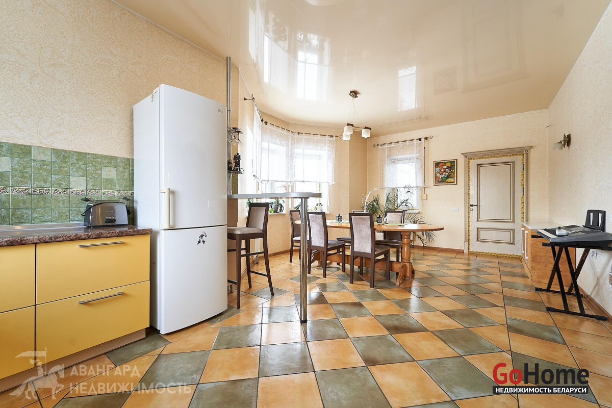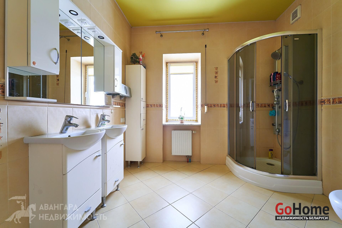 Представляем вашему вниманию просторный добротный дом в д. Волковичи.Дом расположен в 7 км от МКАД в Брестском направлении. Прекрасное живописное место. Рядом с домом водохранилище и река Птичь.Дом расположен на холме, из окон открывается потрясающий вид на окрестности.Построен в 2001 году, в 2012 был выполнен ремонт. Материал стен – кирпич. Фасад утеплен и отделан декоративным камнем. В доме 3 уровня. На первом расположена просторная кухня с выходом на террасу, гостиная с камином, кабинет и большой санузел. Второй уровень жилой. 3 жилых комнаты, санузел и гардероб. На цокольном уровне размещена сауна с душевой, просторная зона отдыха с баром, гараж и топочная. Есть возможность установки купели, бассейна, джакузи. Коммуникации:- Отопление на газу. Высокопроизводительный котел Viessman. - Собственная скважина- Канализация местная- Электричество - ОптоволокноДом оснащен системой теплых полов и радиаторами отопленияУчасток 18 соток в частной собственности. Ухоженный газон с зелеными насаждениями, туями, кустарниками. Дорожки вымощены камнем, организована просторная площадка для парковки. Отличное транспортное сообщение. 10 минут от ст. метро Малиновка. Регулярное транспортное сообщение. Асфальтированная дорога до дома. Чистая продажа.