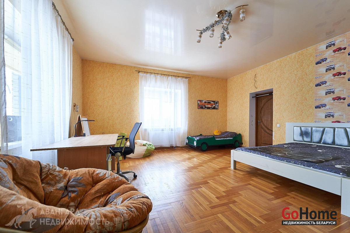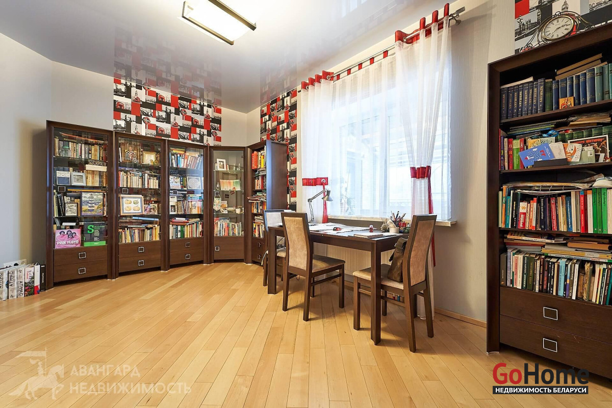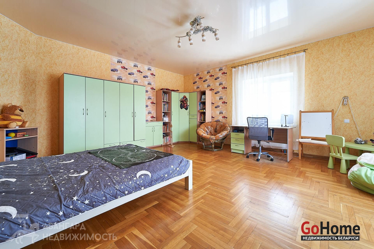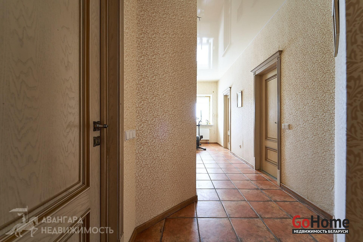Представляем вашему вниманию просторный добротный дом в д. Волковичи.Дом расположен в 7 км от МКАД в Брестском направлении. Прекрасное живописное место. Рядом с домом водохранилище и река Птичь.Дом расположен на холме, из окон открывается потрясающий вид на окрестности.Построен в 2001 году, в 2012 был выполнен ремонт. Материал стен – кирпич. Фасад утеплен и отделан декоративным камнем. В доме 3 уровня. На первом расположена просторная кухня с выходом на террасу, гостиная с камином, кабинет и большой санузел. Второй уровень жилой. 3 жилых комнаты, санузел и гардероб. На цокольном уровне размещена сауна с душевой, просторная зона отдыха с баром, гараж и топочная. Есть возможность установки купели, бассейна, джакузи. Коммуникации:- Отопление на газу. Высокопроизводительный котел Viessman. - Собственная скважина- Канализация местная- Электричество - ОптоволокноДом оснащен системой теплых полов и радиаторами отопленияУчасток 18 соток в частной собственности. Ухоженный газон с зелеными насаждениями, туями, кустарниками. Дорожки вымощены камнем, организована просторная площадка для парковки. Отличное транспортное сообщение. 10 минут от ст. метро Малиновка. Регулярное транспортное сообщение. Асфальтированная дорога до дома. Чистая продажа.