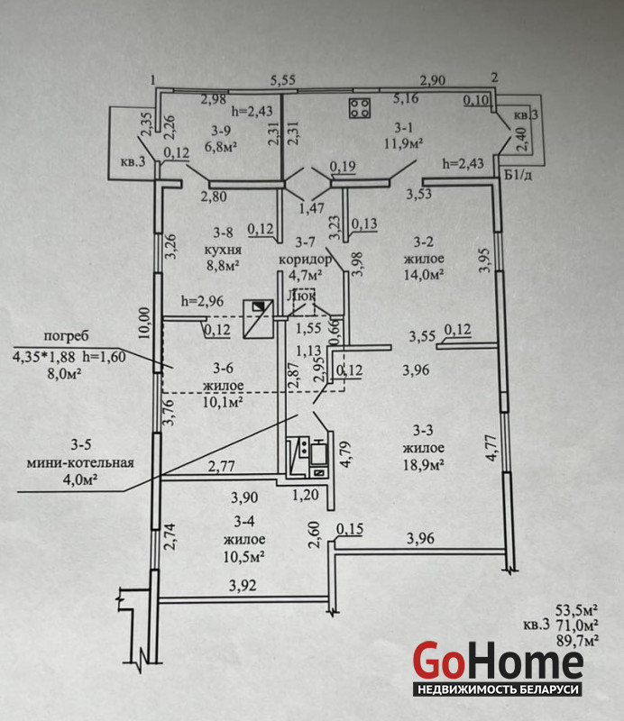 Продаётся часть жилого дома (выделенная квартира) в центре города по улице Ленинградская. Общая площадь по СНБ 89,7 м², общая площадь жилого помещения 71,0 м², жилая 53,5 м². 4 жилые комнаты. Два входа с разных сторон, при необходимости можно разделить на 2 отдельных жилья, закрыв всего одну дверь. Дом из бруса, на крыше - жесть, окна деревянные. Отопление - твердотопливный котёл, батареи разведены в жилых комнатах, есть печь. Вода центральная (холодная), канализация местная, газ привозной в баллонах, идёт по улице. Общая площадь участка 0,1498 га. Огорожен, отдельный вход от соседей, есть заезд для авто. Подъезд асфальтирован. Дом находится в тупике, нет шума от дороги.